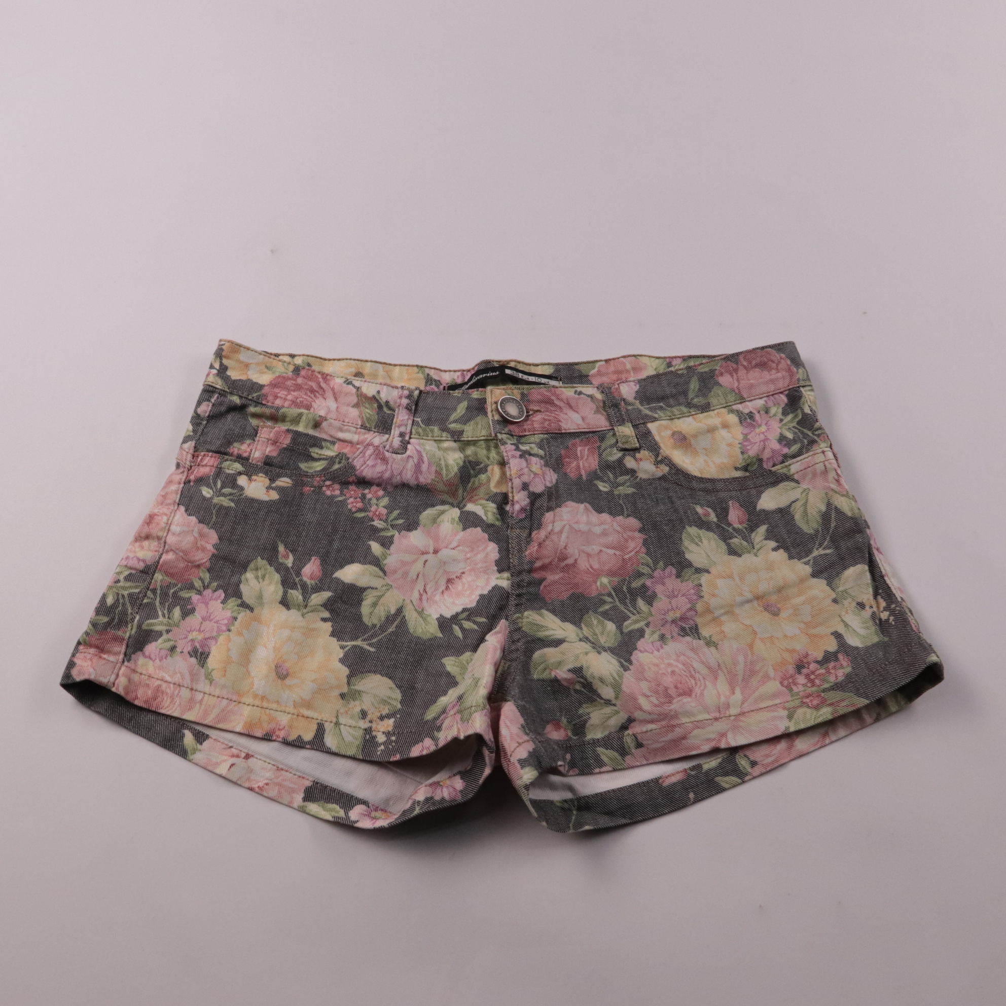 Женские джинсовые шорты Stradivarius с цветочным принтом и классической посадкой на пуговице. Подойдут для летних прогулок и отдыха, легко сочетаются с однотонными футболками и топами. Плотный деним держит форму и удобно носится каждый день.