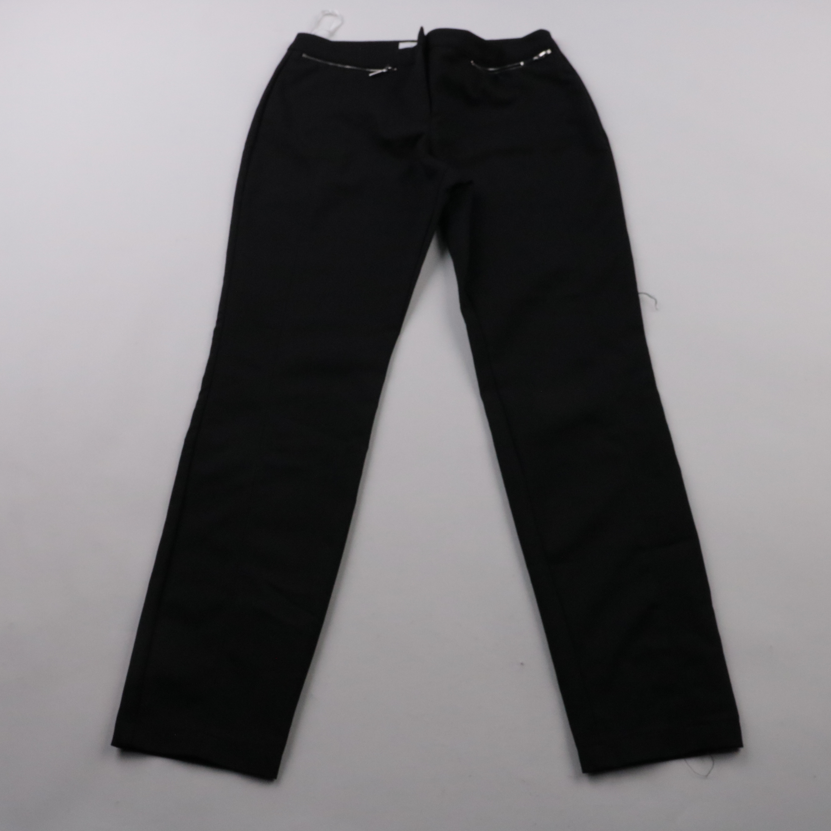 Чёрные женские брюки Primark прямого кроя с аккуратными карманами на молнии. Подойдут для офиса и повседневных образов, хорошо сочетаются с рубашкой или джемпером. Плотная ткань со стрейчем комфортно садится и меньше мнётся.