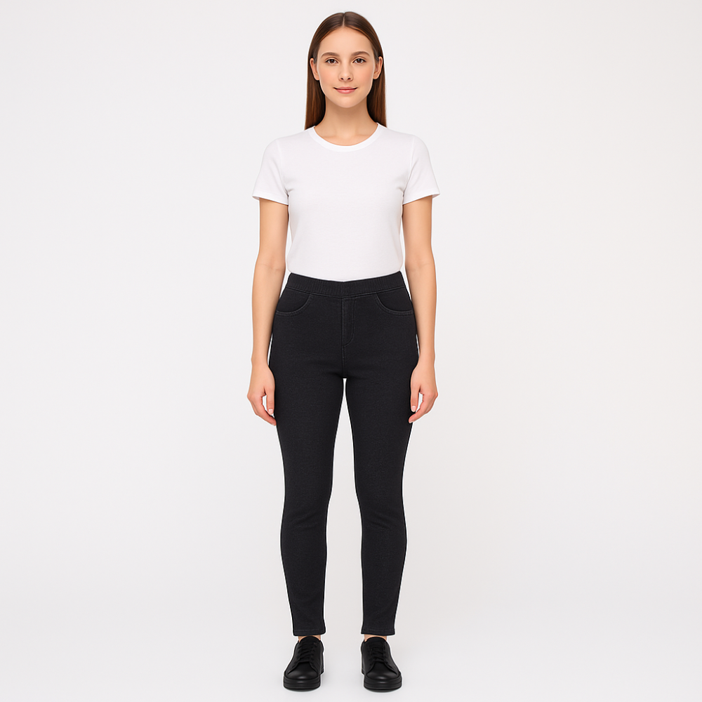 Женские брюки Essentials в чёрном цвете, зауженного кроя с эластичным поясом и декоративными карманами. Подойдут для повседневной носки и офиса в сочетании с футболкой, рубашкой или жакетом. Практичный плюс — тянущаяся ткань комфортно садится по фигуре...
