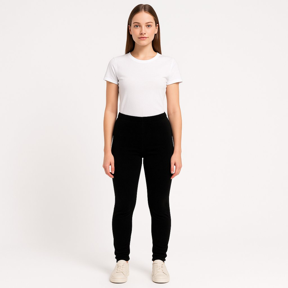 Чёрные легинсы из хлопка с небольшим добавлением эластана, хорошо тянутся и комфортно сидят по фигуре. Подойдут для повседневных образов, спорта и дома благодаря эластичному поясу. Практичны в уходе и легко сочетаются с базовыми вещами.
