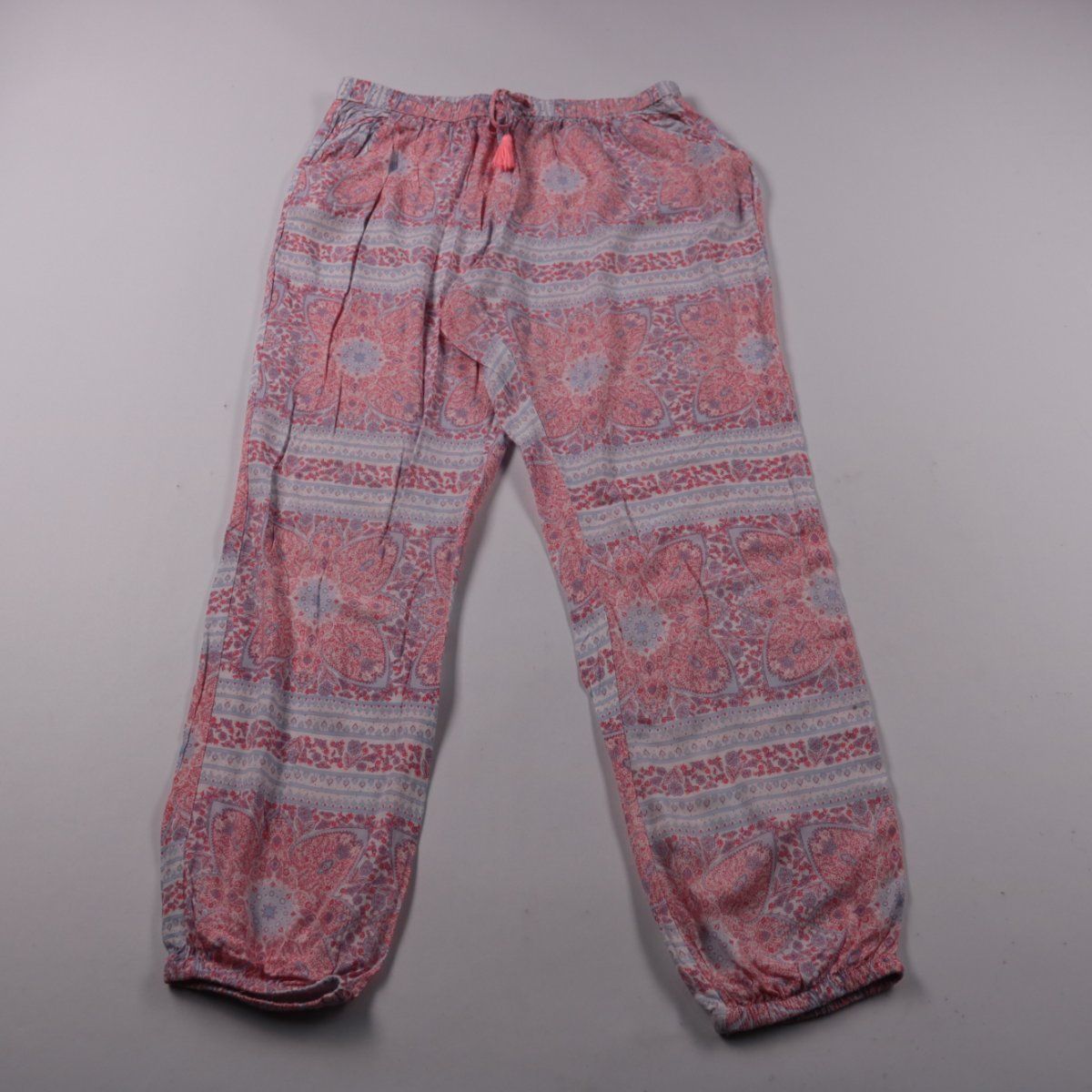 Лёгкие женские брюки Hunkemoller с эластичным поясом на кулиске и мягкими резинками по низу, с принтом пейсли в розово-голубых тонах. Подойдут для дома, отпуска и прогулок в тёплую погоду. Вискоза хорошо дышит и быстро сохнет после стирки.