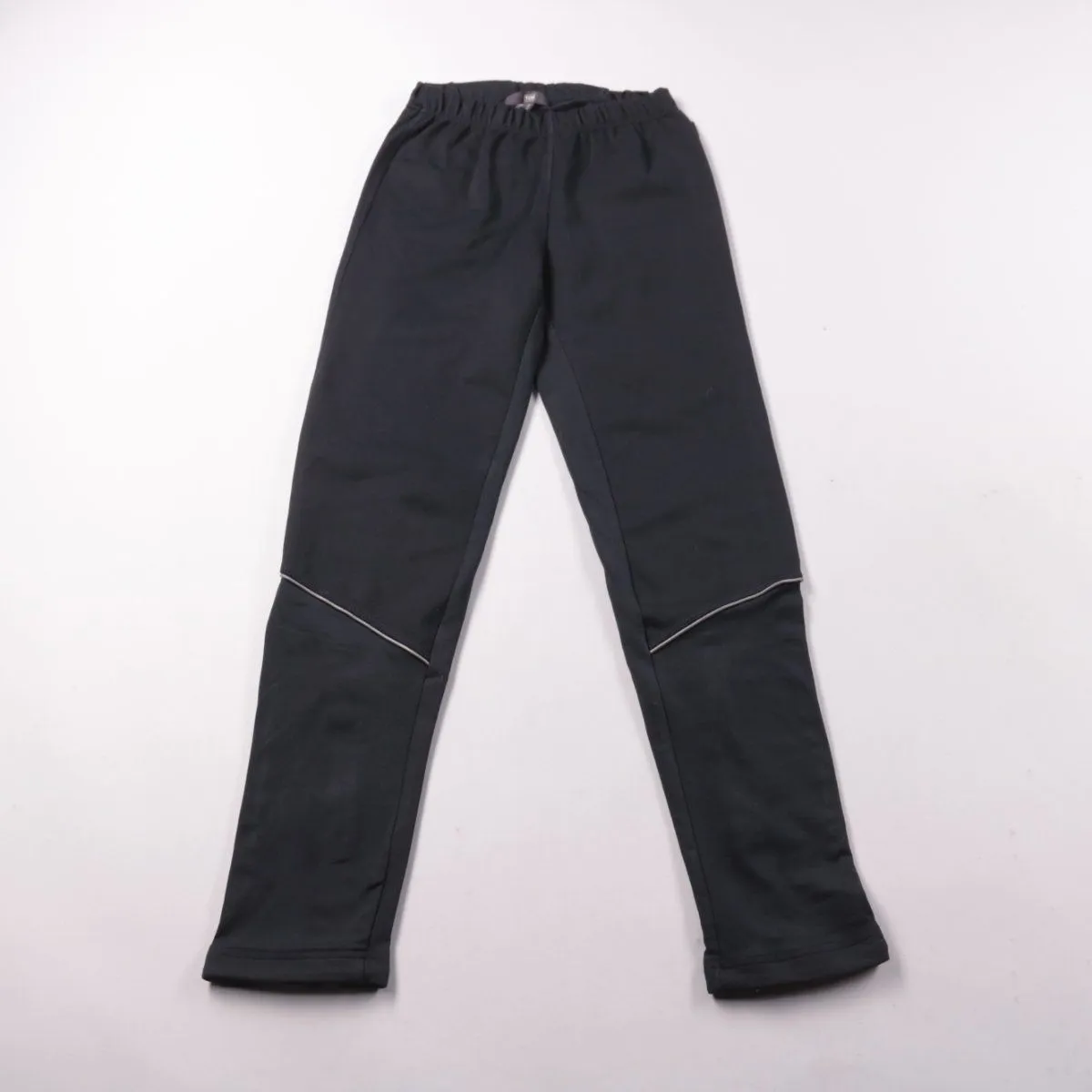 Женские брюки TCM чёрного цвета с эластичным поясом и молниями по низу штанин. Подойдут для тренировок, прогулок и повседневной носки в прохладную погоду. Практичны тем, что тянущаяся ткань хорошо садится по фигуре и не сковывает движения.