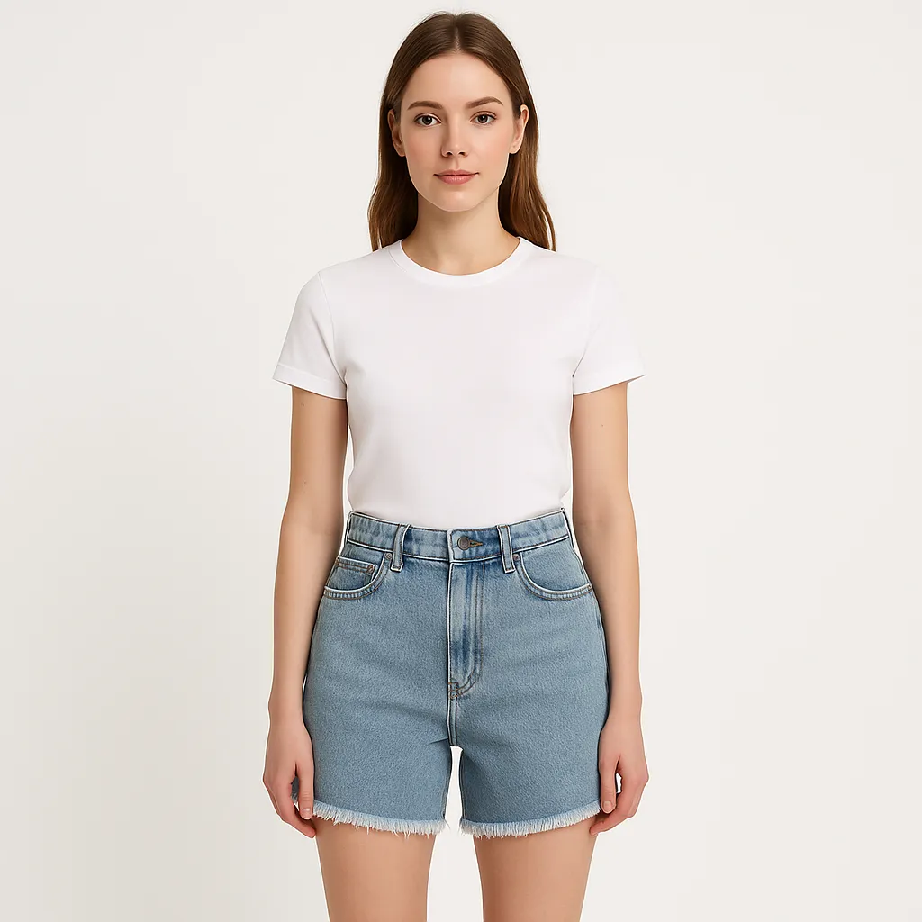 Джинсовые шорты Etam из хлопка, светло-голубой деним с высокой посадкой и необработанным краем. Подойдут для летних прогулок и отдыха, легко сочетаются с футболками и топами. Плотная ткань хорошо держит форму и комфортна в носке.