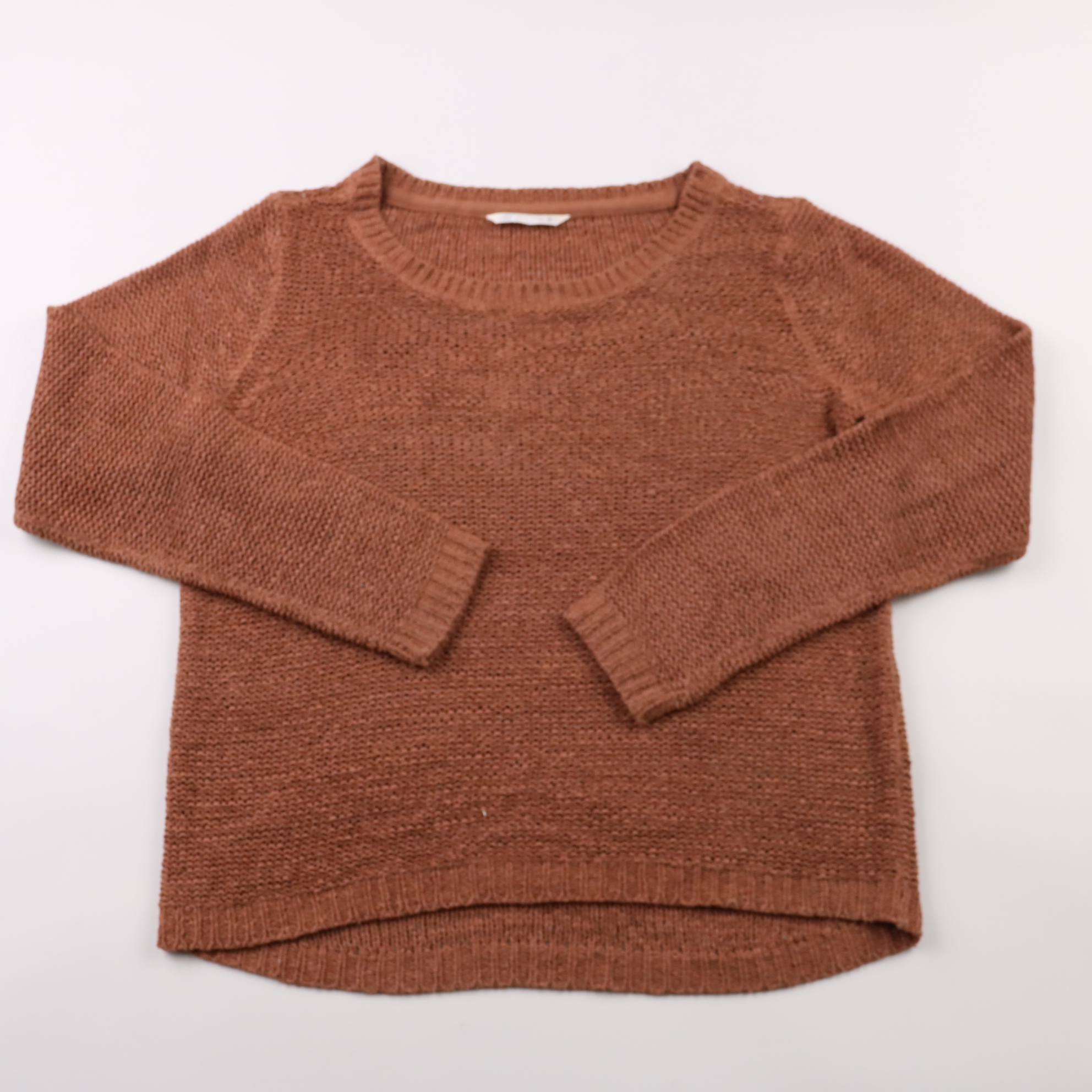 Вязаный джемпер Only терракотово-коричневого цвета с круглым вырезом и расслабленной посадкой. Подойдёт для повседневных образов в прохладную погоду — с джинсами, брюками или юбкой. За счёт ажурной вязки хорошо дышит и комфортно носится слоем.
