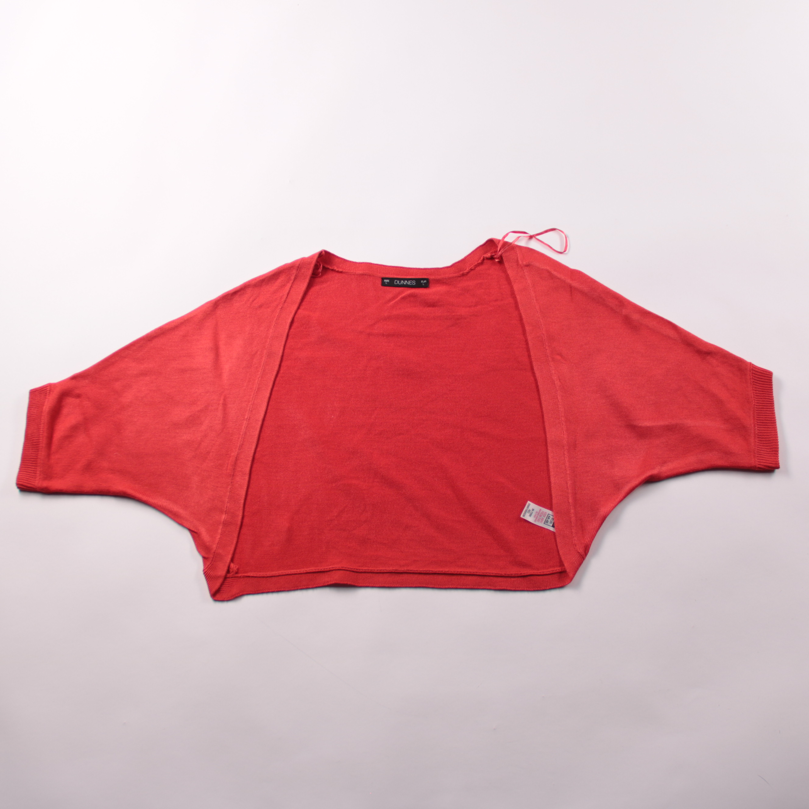 Женский укороченный кардиган Dunnes ярко-красного цвета с рукавами «летучая мышь» и открытым передом. Подойдёт для демисезона и прохладных летних вечеров — удобно накинуть на платье, топ или водолазку. Акриловая пряжа лёгкая и неприхотлива в уходе, вещ...