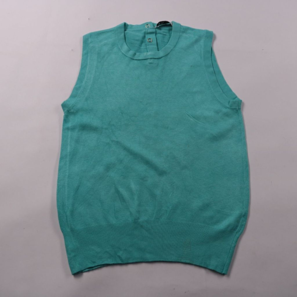 Трикотажная кофта Zara без рукавов в бирюзовом цвете, с небольшой застёжкой на пуговицы сзади у горловины. Подойдёт для офиса и повседневных образов, удобно носить как самостоятельный топ или под жакет. Практичный плюс — мягкий трикотаж и компактность,...