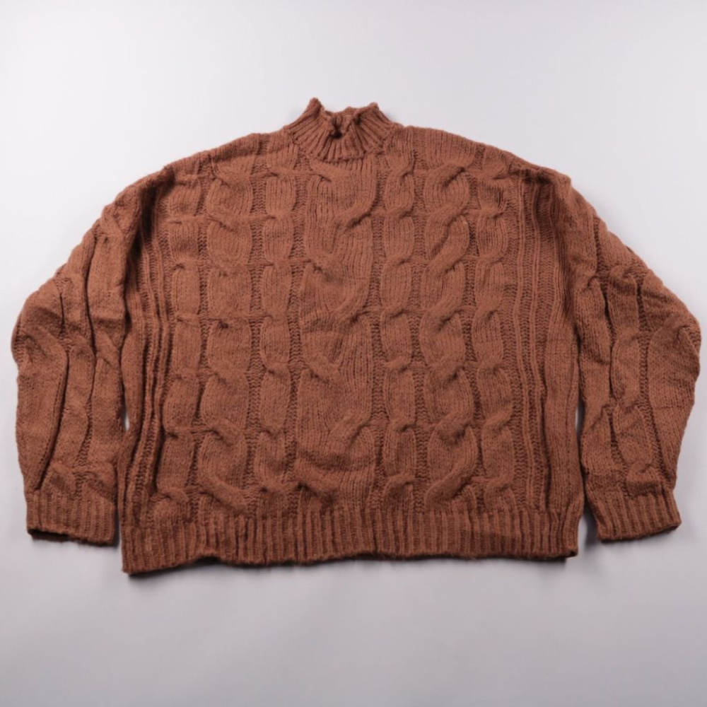 Вязаный свитер ASOS с объёмным узором «косы» и высоким воротником, цвет тёплый коричневый. Подойдёт для прохладной погоды и многослойных образов с джинсами или юбкой. Плотная вязка хорошо сохраняет тепло и комфортно носится каждый день.
