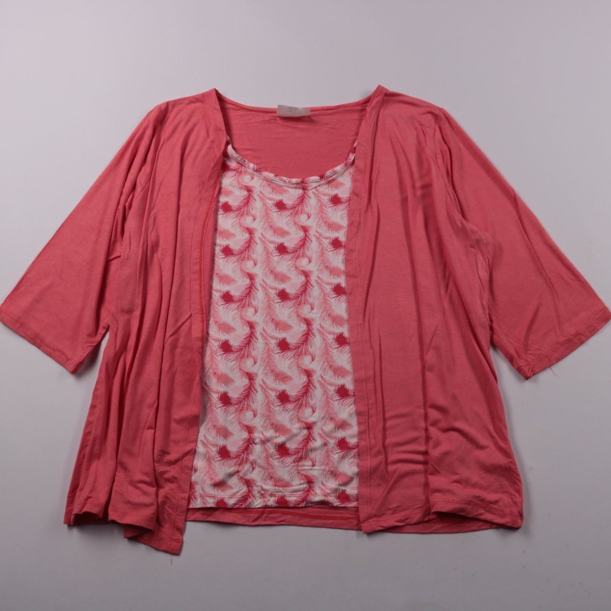 Женский кардиган Gabriella Vicenza кораллового цвета с укороченным рукавом и вставкой с принтом спереди. Подойдёт для повседневных образов и офиса как лёгкий верхний слой на майку или топ. Трикотаж на основе вискозы мягкий и эластичный, комфортно сидит и не стесняет движений.