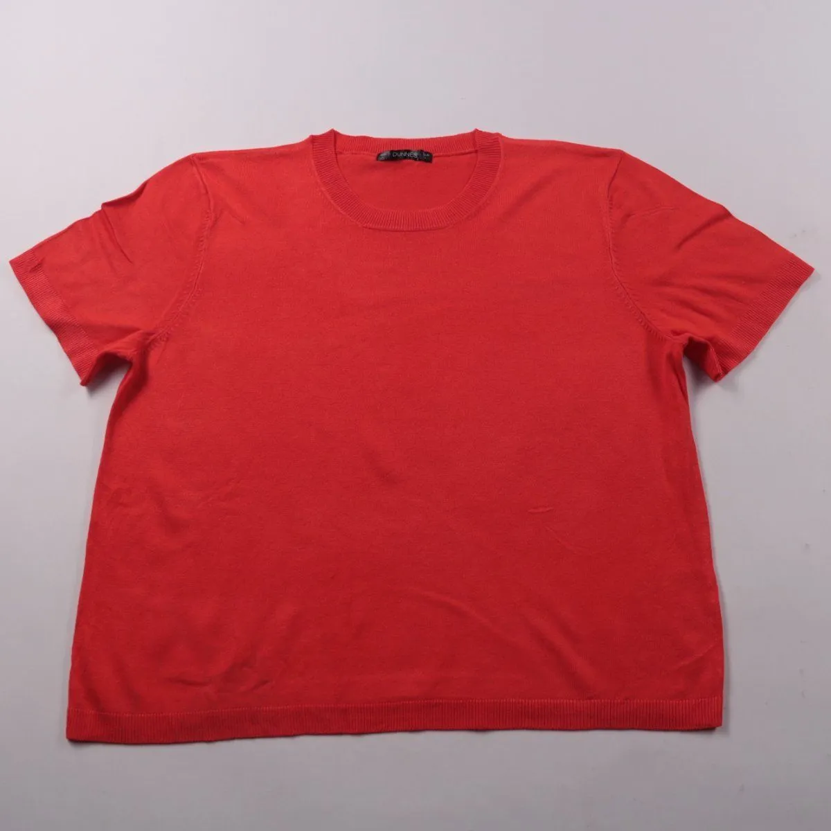 Трикотажная кофта Dunines ярко-красного цвета с коротким рукавом и круглым вырезом. Подойдёт для повседневных образов и офиса в тёплое время года, хорошо сочетается с джинсами и юбками. Вискоза в составе делает ткань мягкой и более дышащей.
