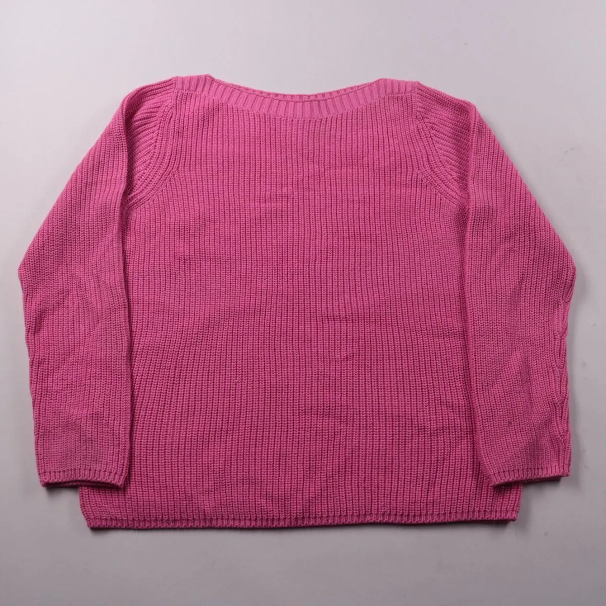 Вязаный джемпер F&F ярко-розового цвета с круглым вырезом и рукавом реглан. Подойдёт для демисезона и прохладных летних вечеров, легко сочетается с джинсами и юбками. Плотная вязка держит форму и комфортна в носке.