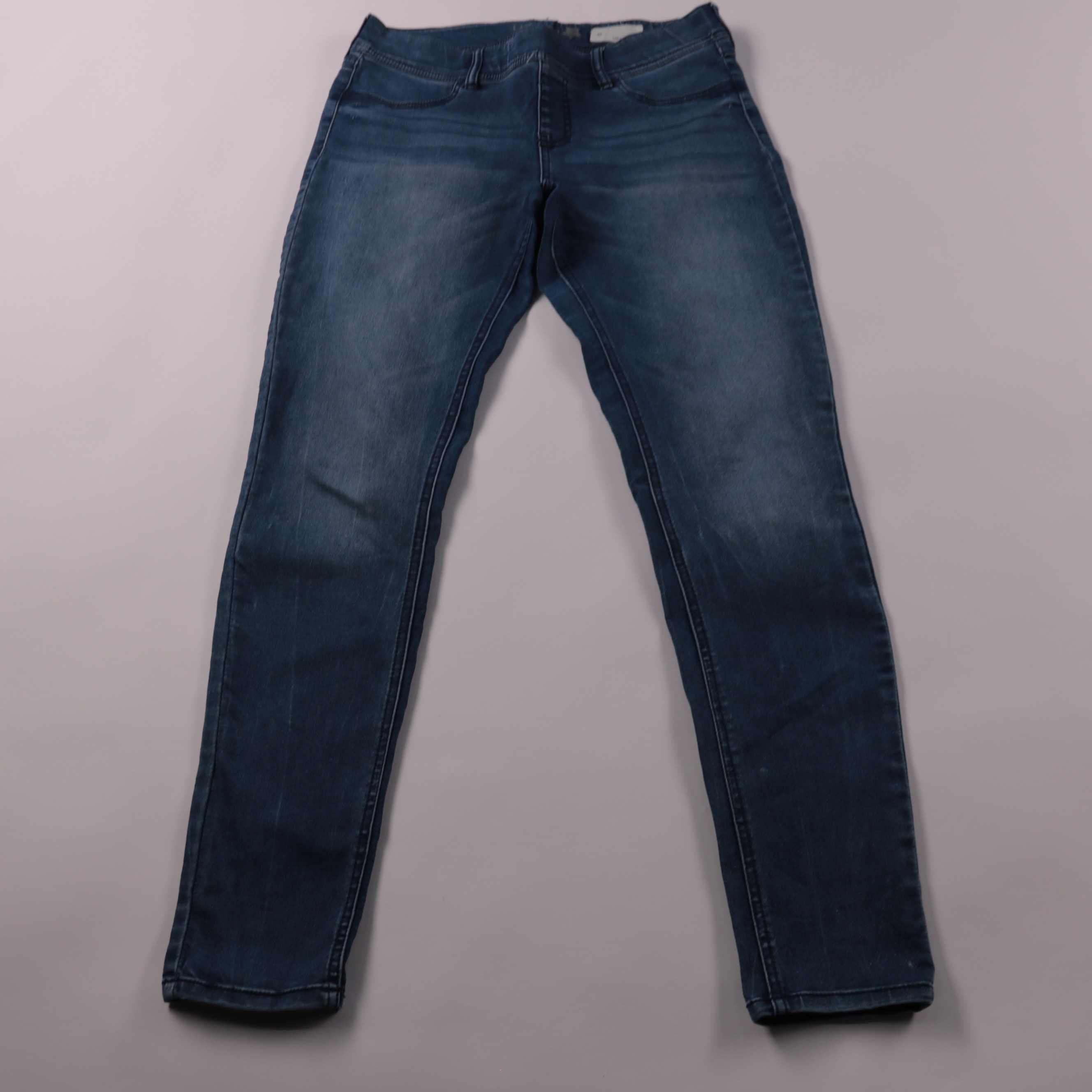 Женские джеггинсы Denim синего цвета, облегающая модель с эффектом лёгкой варки. Подойдут для повседневных образов с кедами или ботинками в любое время года. Эластичный деним хорошо тянется и комфортно сидит по фигуре.