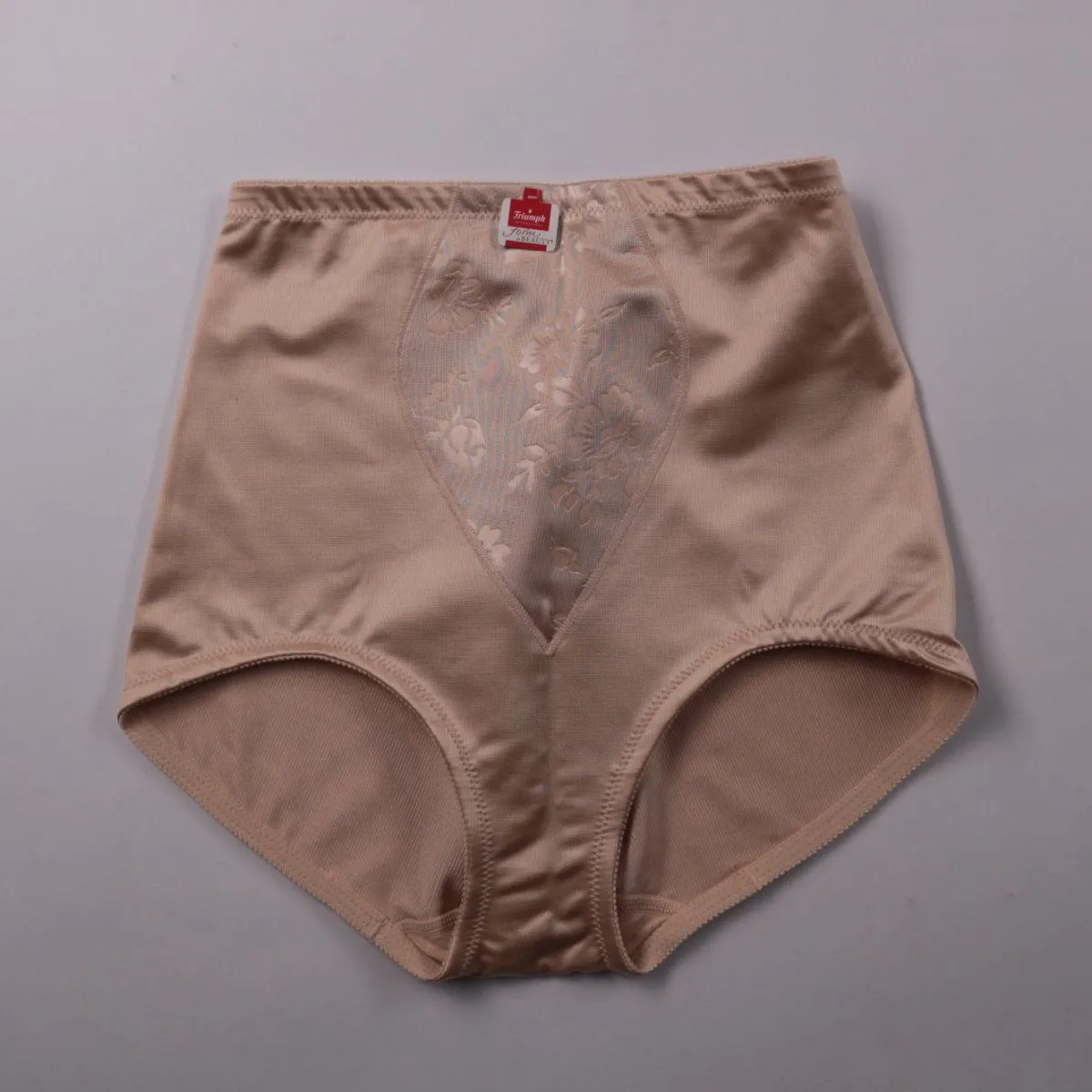 Женские утягивающие трусы Triumph Contour H в бежевом цвете, высокая посадка с вставкой с цветочным узором спереди. Подойдут для повседневной носки и под облегающую одежду, чтобы сделать силуэт более ровным. Плотный эластичный материал хорошо держит форму и комфортно садится по талии.