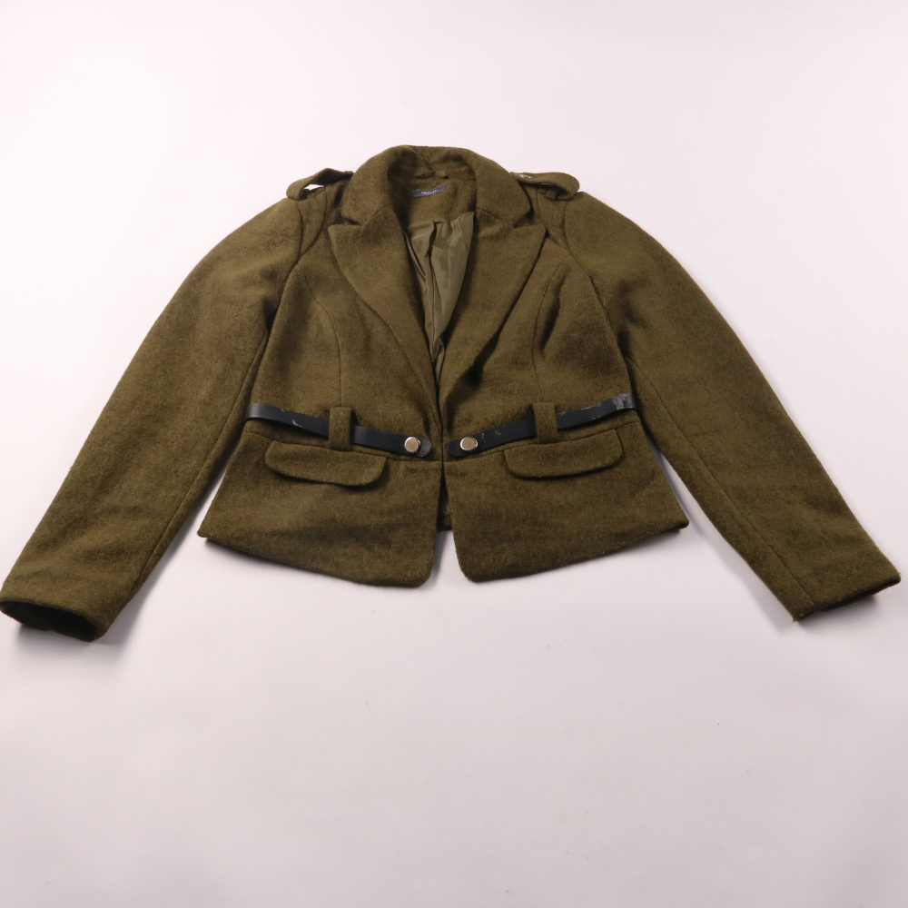 Женский укороченный пиджак Yessica из шерстяной смеси в оливково-зелёном цвете, с лацканами и декоративным ремешком на талии. Подойдёт для повседневных и более собранных образов в прохладную погоду, хорошо смотрится с джинсами или юбкой. Практичный плю...