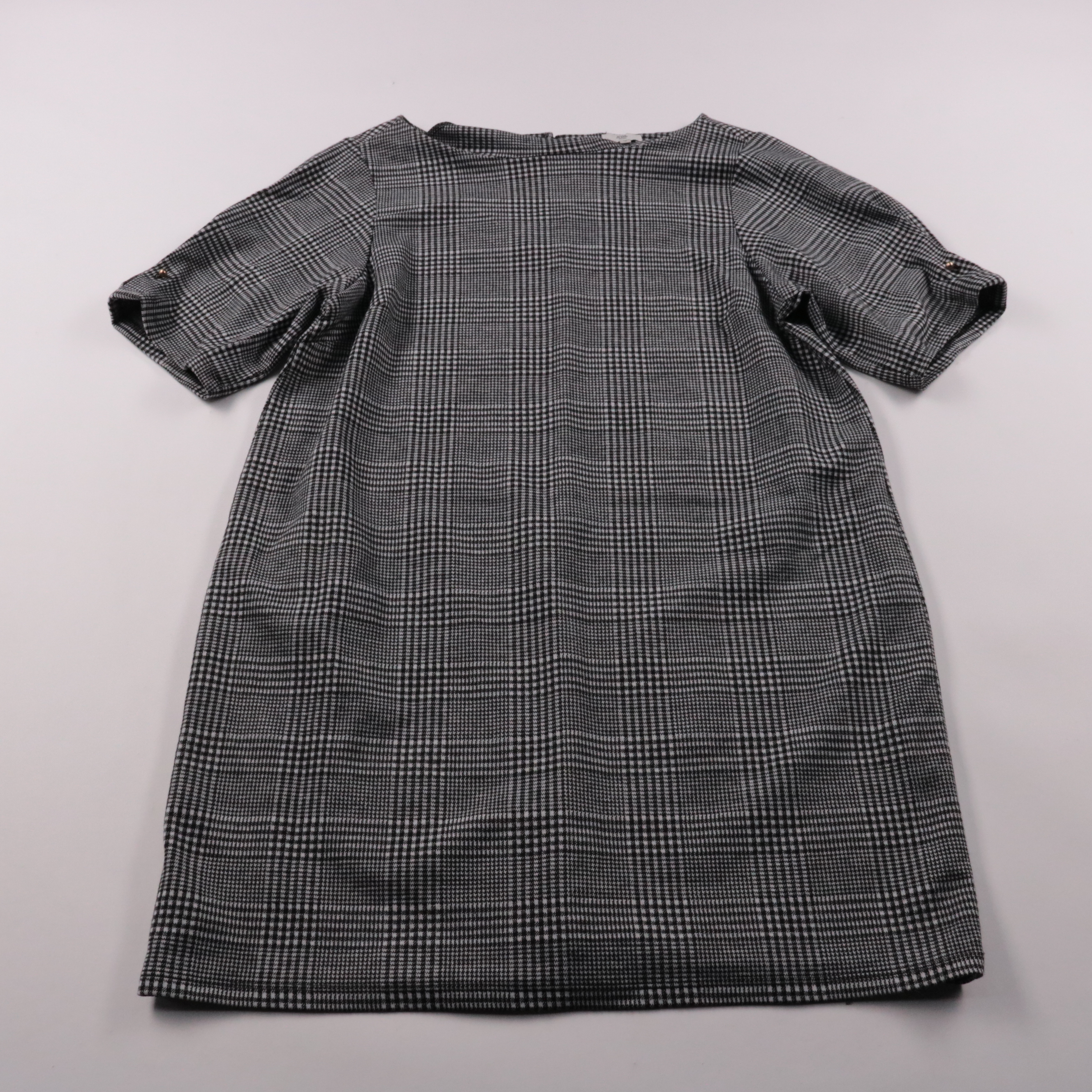 Повседневное платье River Island Plus в серую клетку, прямого кроя с коротким рукавом. Подойдёт для офиса и на каждый день, легко сочетается с ботильонами или кедами. Практичный плюс — плотная ткань почти не мнётся и комфортно тянется за счёт эластана.