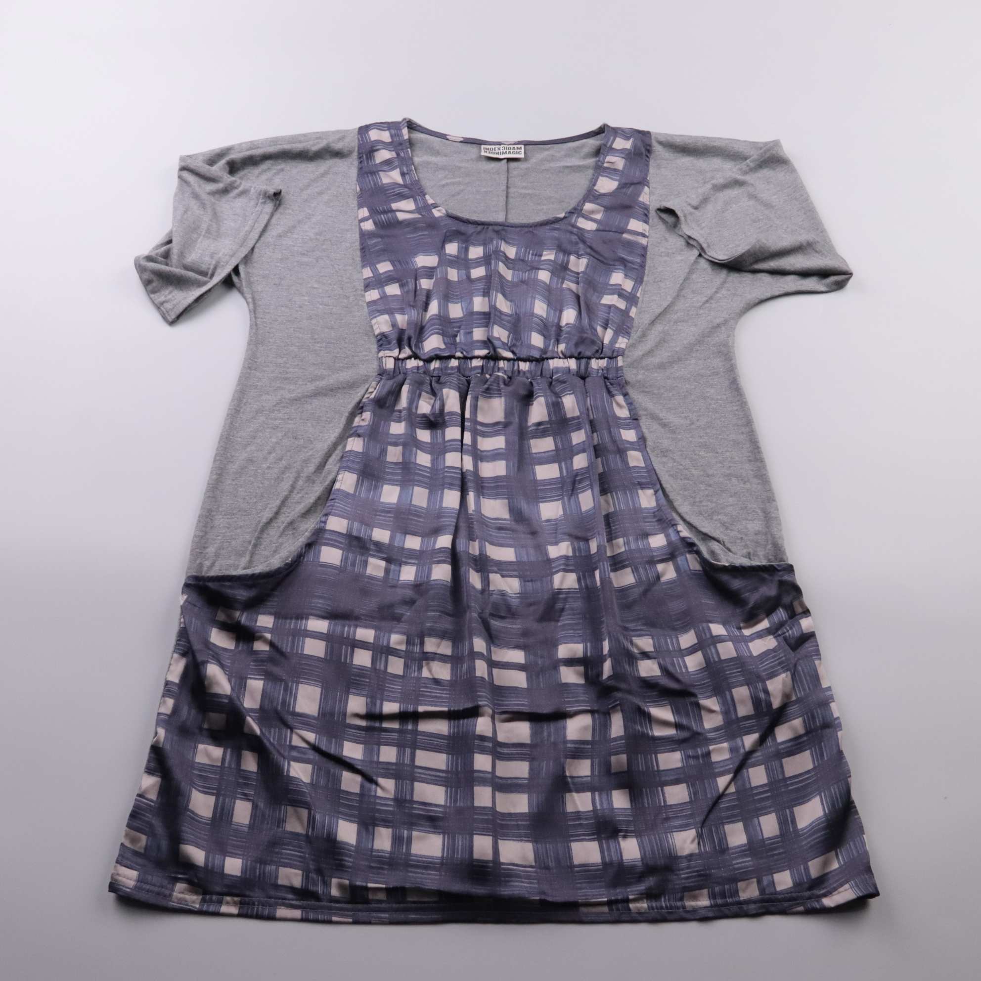 Повседневное платье Indehjorn Heroimarcic с комбинированным дизайном: серый верх и клетчатая юбка в сине-бежевой гамме. Подойдёт для города и офиса благодаря спокойным цветам и эластичной талии. Практично тем, что не сковывает движения и легко сочетает...