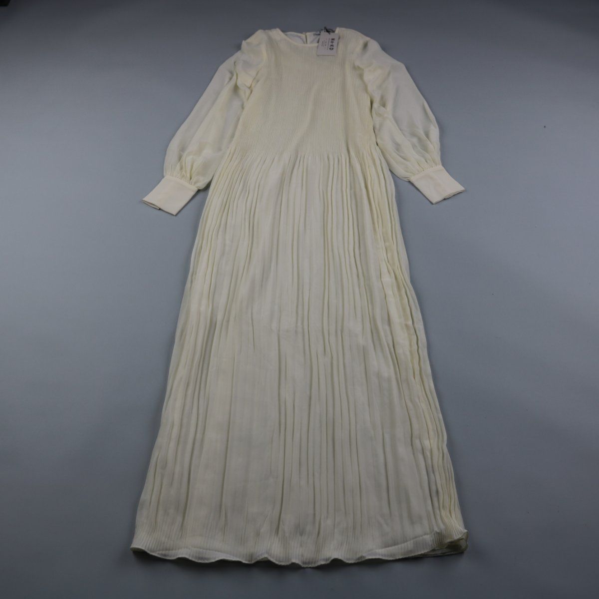 Платье NA-KD кремового оттенка длины макси с плиссированной юбкой и длинными рукавами на манжетах. Подойдёт для повседневных выходов и образов в стиле smart casual. Практично тем, что лёгкий полиэстер быстро сохнет и не требует сложного ухода.