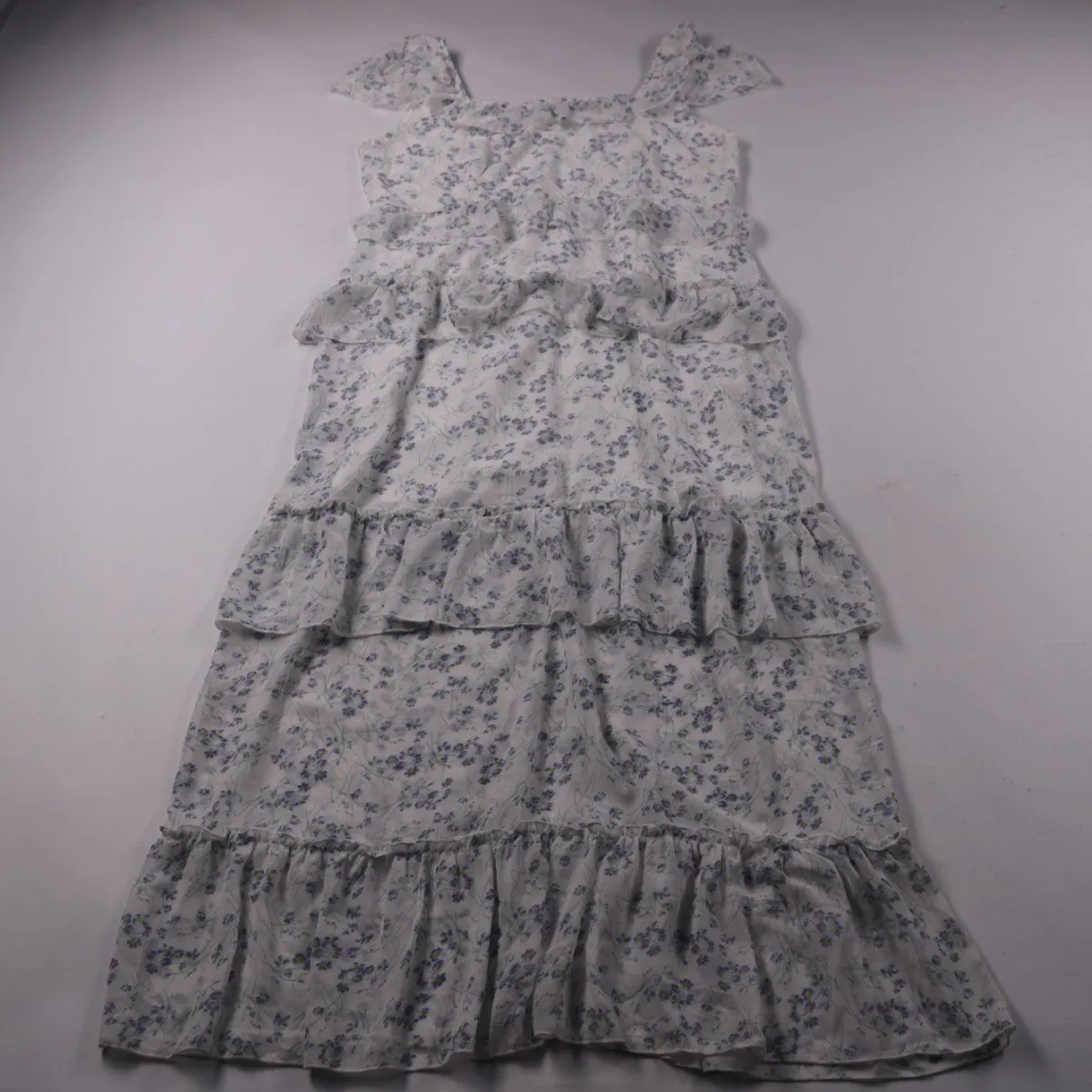 Повседневное платье Missguided Plus в белом цвете с мелким цветочным принтом и ярусными оборками. Подойдёт для лета, прогулок и отдыха, благодаря свободному крою и открытым плечам. Лёгкая синтетическая ткань с добавлением эластана меньше мнётся и проще в уходе.