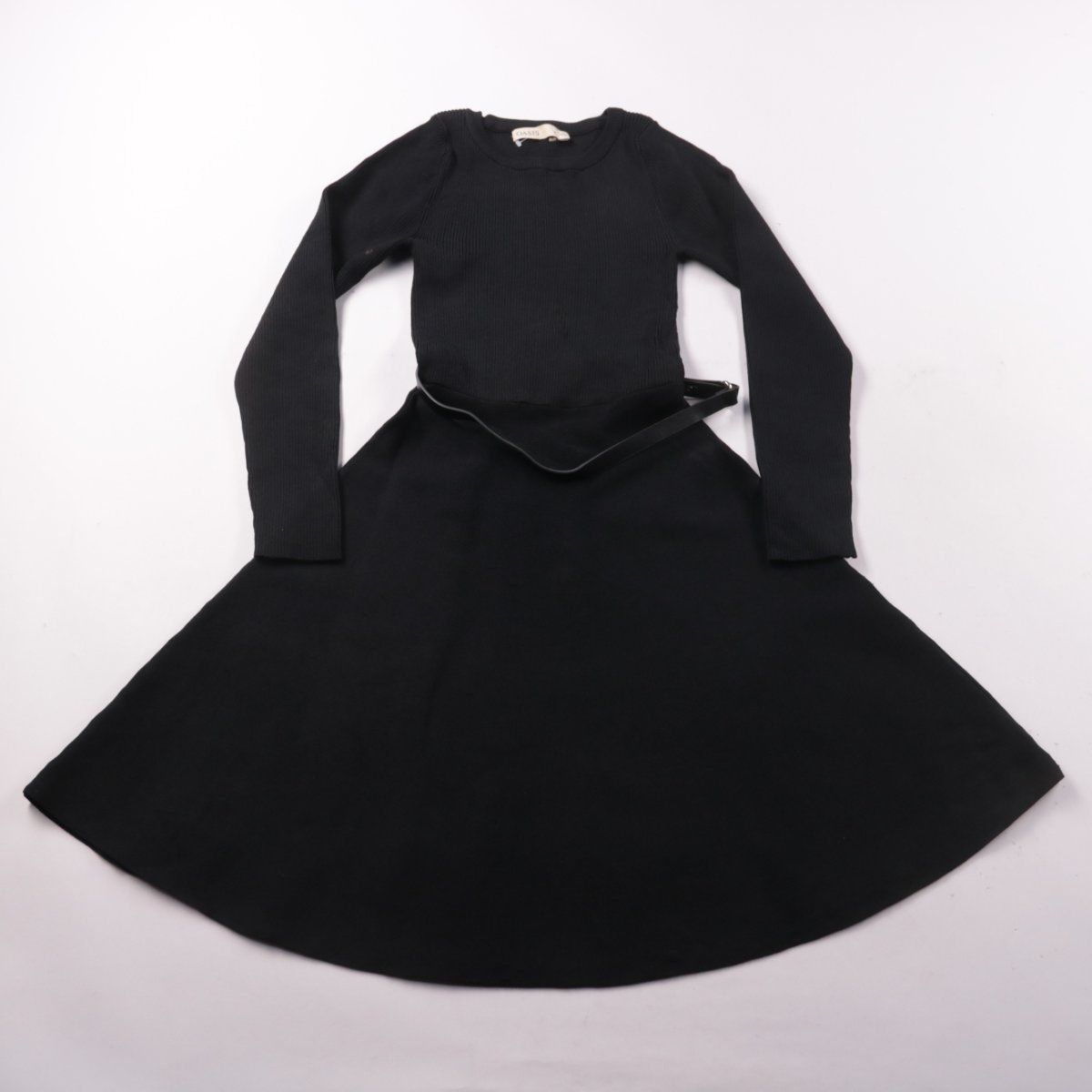 Повседневное платье OASIS чёрного цвета, приталенное с расклёшенной юбкой и длинными рукавами. Подойдёт для офиса и на каждый день, хорошо сочетается с ботильонами или туфлями. Практичное преимущество — материал с вискозой и полиамидом меньше мнётся и держит форму.
