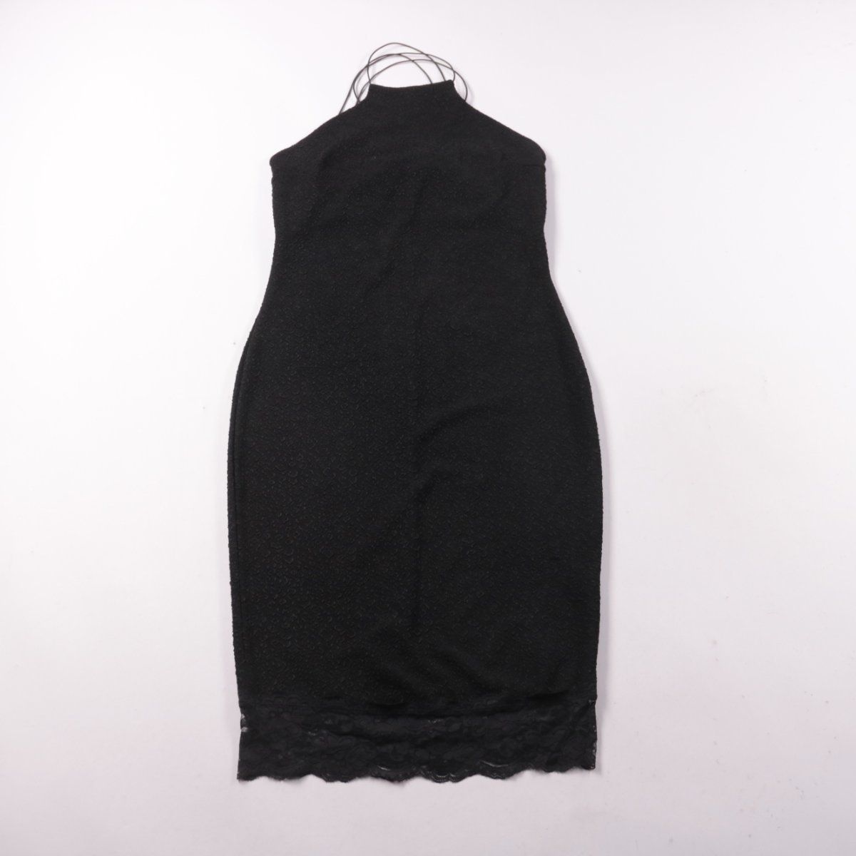 Чёрное облегающее платье River Island без рукавов, с высоким воротником и кружевной отделкой по низу. Подойдёт для повседневных выходов и вечерних встреч, хорошо смотрится с жакетом или кардиганом. Эластичная ткань комфортно тянется и не сковывает движения.