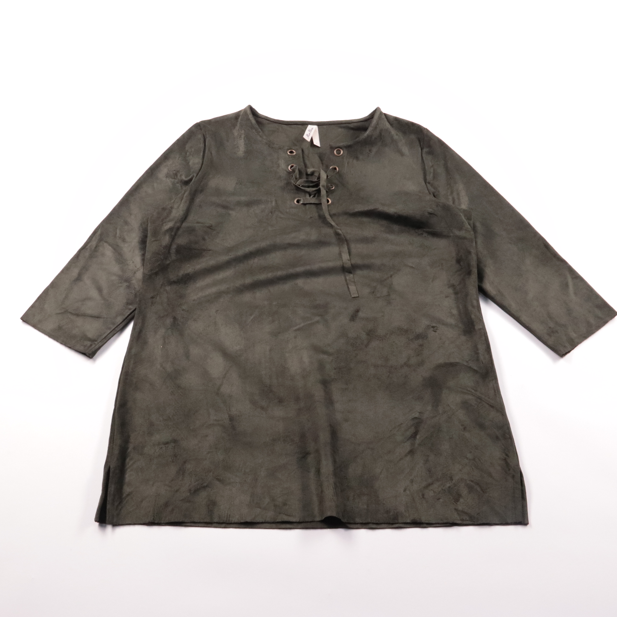 Блузка Mist Woman свободного кроя из мягкой ткани с лёгким блеском, с шнуровкой у горловины и рукавом 3/4. Подойдёт для повседневных образов и офиса с брюками или юбкой. Материал почти не мнётся и слегка тянется за счёт эластана.