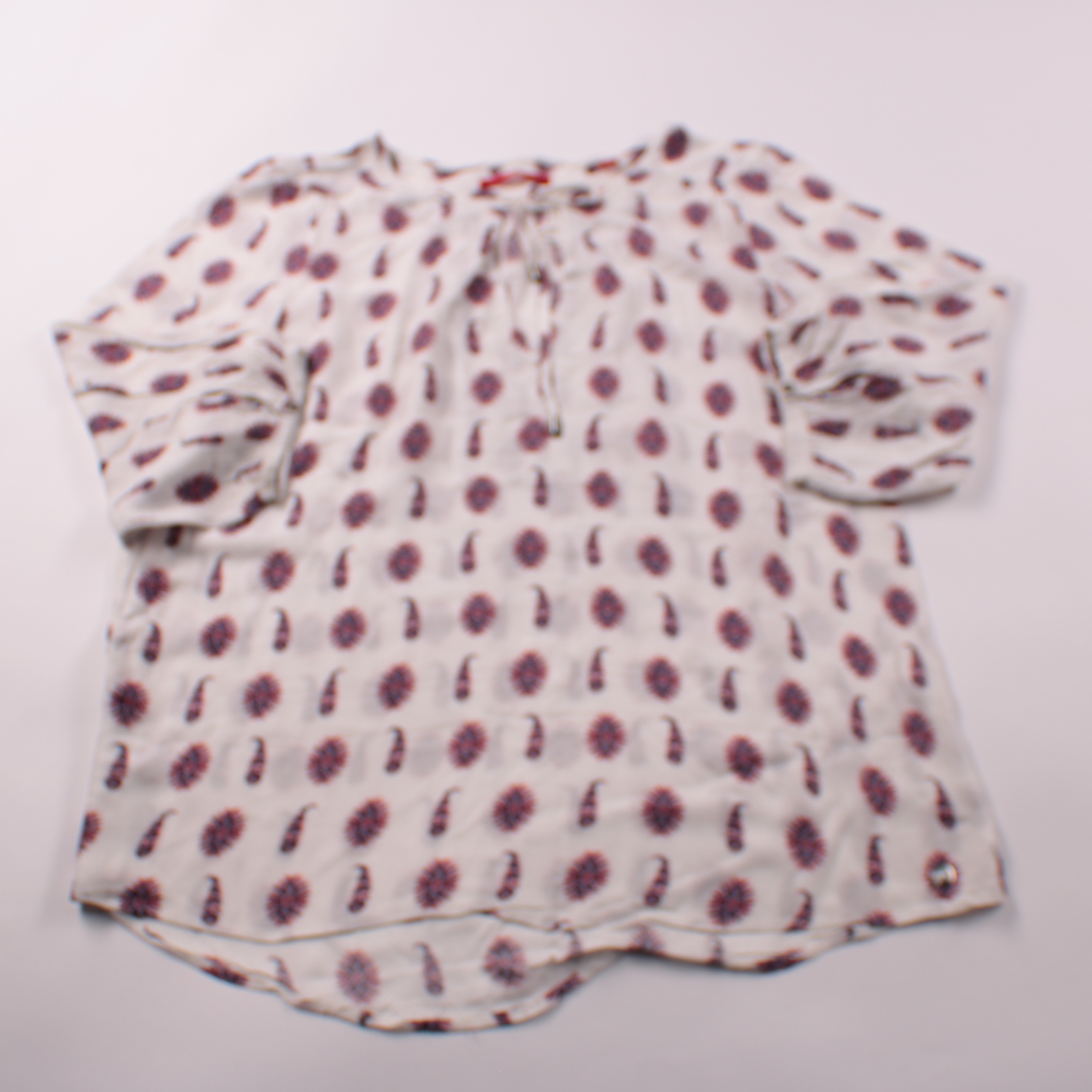 Женская блузка S.Oliver из лёгкой ткани с принтом на светлом фоне и небольшим вырезом с завязками. Подойдёт для повседневных образов в тёплую погоду, хорошо сочетается с джинсами и шортами. Материал тонкий и комфортный, не сковывает движения.