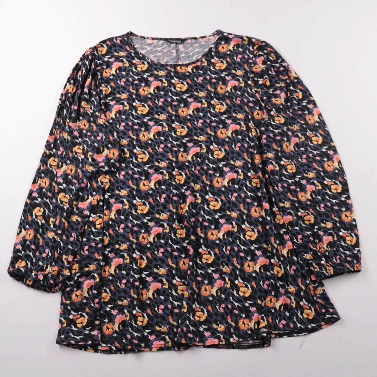 Женская блузка Yours с цветочным принтом на тёмном фоне и округлым вырезом. Подойдёт для повседневных образов и офиса, хорошо сочетается с джинсами или однотонной юбкой. Мягкая вискозная ткань со стрейчем комфортно садится по фигуре и не сковывает движения.