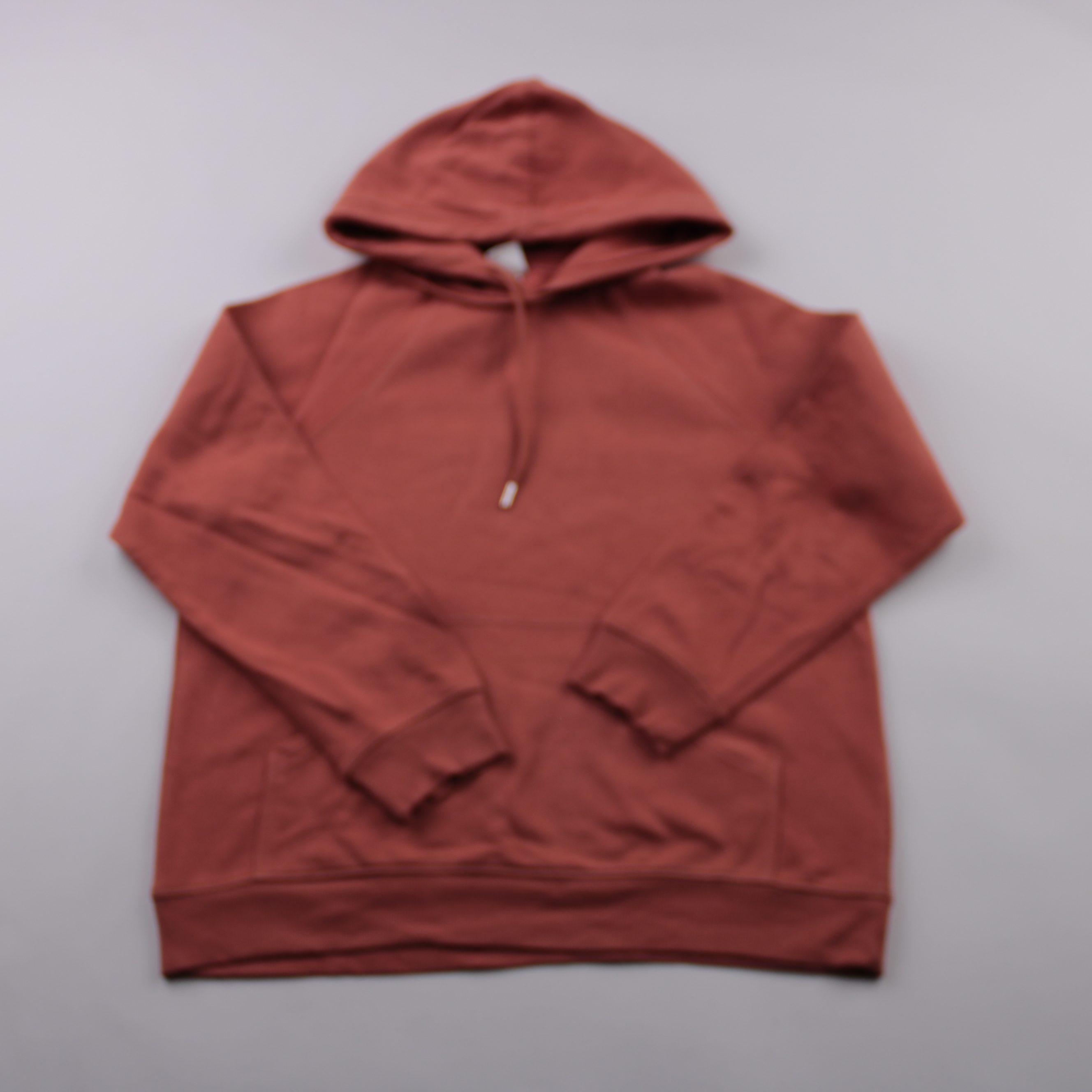 Толстовка H&M Basics кирпично-розового цвета с капюшоном и шнурком. Подойдёт для повседневных образов, прогулок и поездок в прохладную погоду. Мягкая изнанка сохраняет тепло и комфортно носится в течение дня.