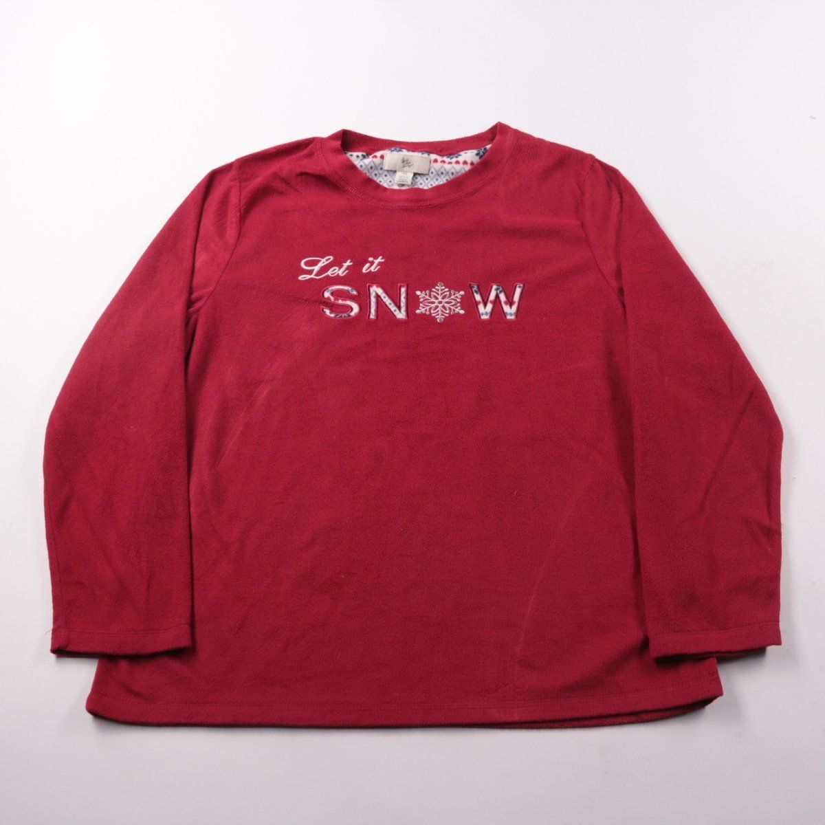 Женский свитшот Love to Lounge бордового цвета с принтом «Let it SNOW». Подойдёт для дома и повседневной носки в прохладную погоду. Мягкий полиэстер легко стирается и быстро сохнет.