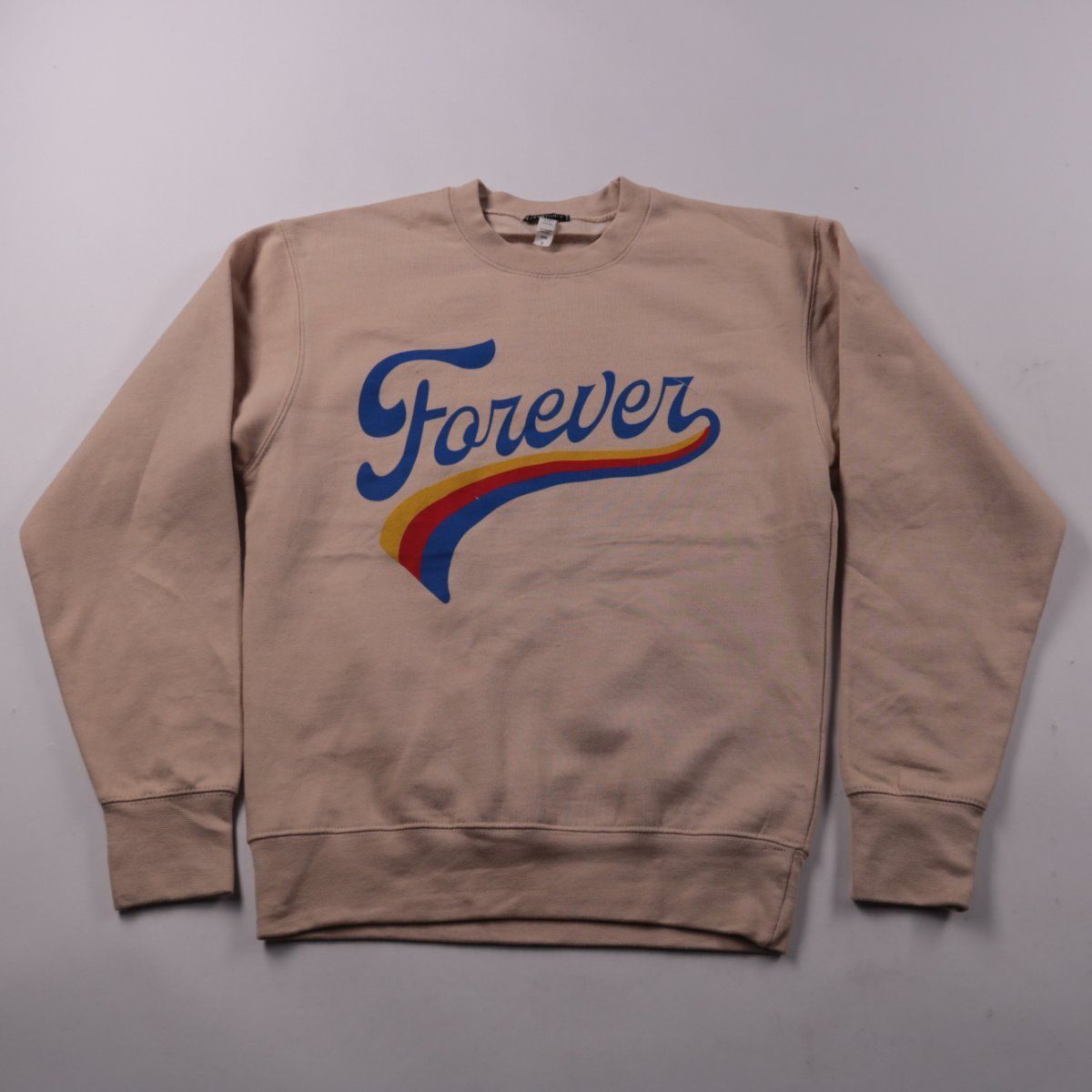 Свитшот Chemistry бежевого цвета с крупным принтом «Forever» на груди. Подойдёт для повседневных образов и прогулок в прохладную погоду. Практичный плюс — мягкий хлопково-полиэстеровый материал, который легко стирать.