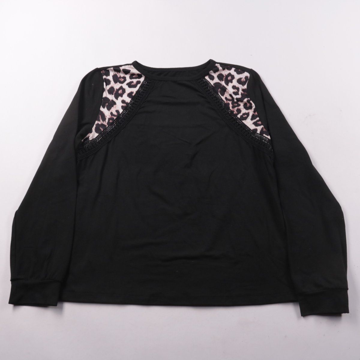 Женский свитшот чёрного цвета с вставками леопардового принта на плечах и длинным рукавом. Подойдёт для повседневных образов в прохладную погоду и как второй слой. Ткань тянется и проста в уходе.