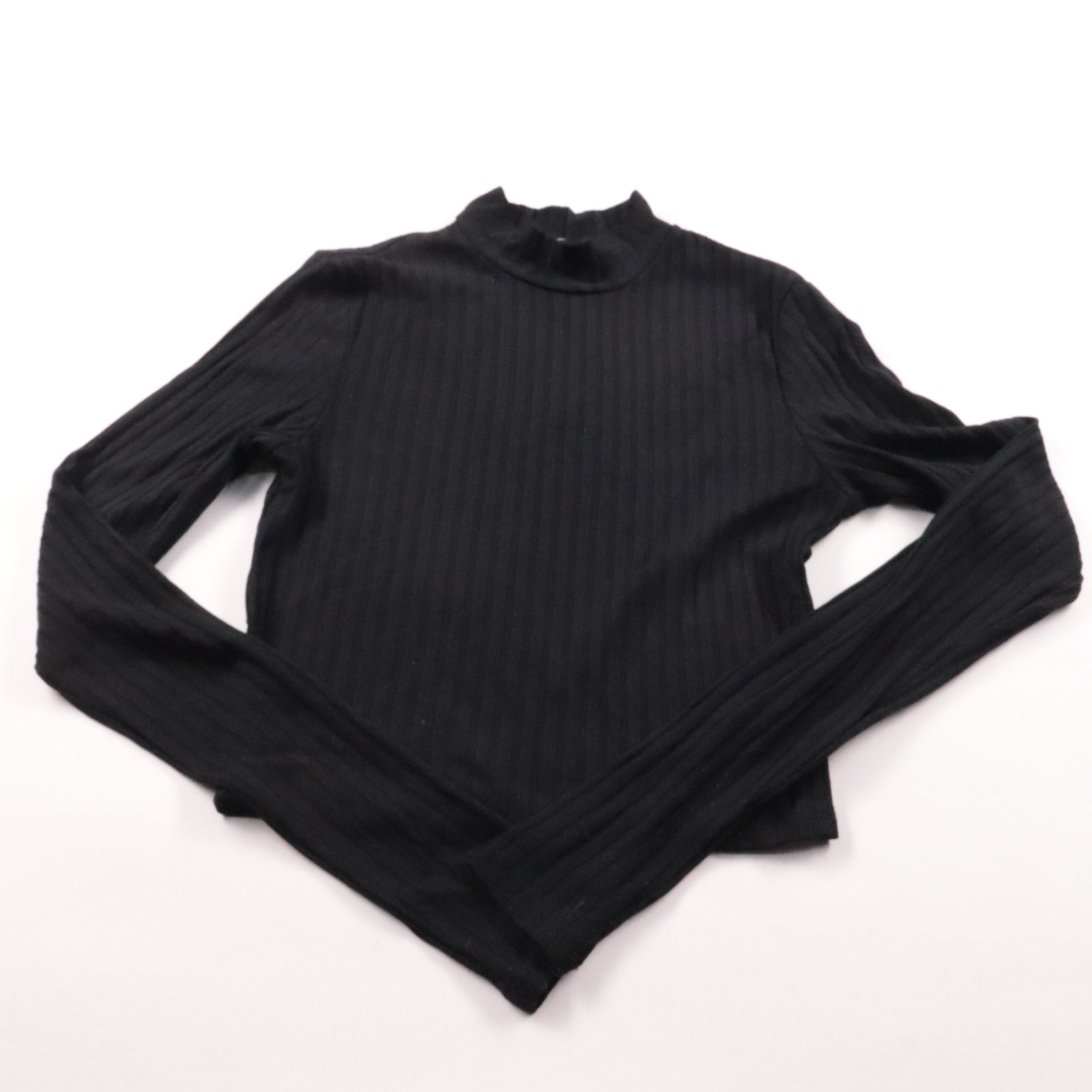 Чёрный женский лонгслив в рубчик с высоким воротником-стойкой и длинным рукавом. Подойдёт для повседневных образов и как базовый слой в прохладную погоду. Тянущийся трикотаж удобно садится по фигуре и не сковывает движения.