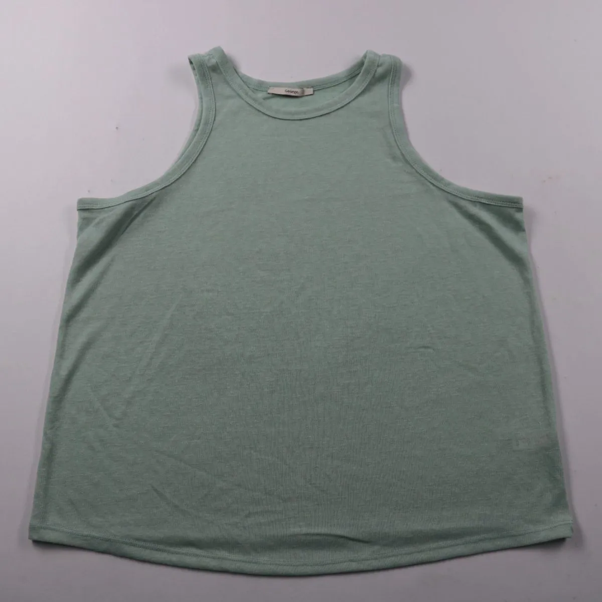 Женская майка George мятно-зелёного цвета с круглым вырезом и широкими проймами. Подойдёт для лета, спорта и повседневных образов. Полиэстеровая ткань практична в уходе и быстро сохнет.