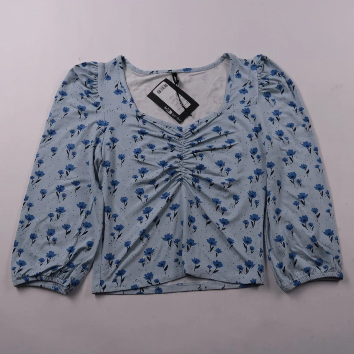 Топ Only с квадратным вырезом и сборкой по центру, с цветочным принтом на светло-голубом фоне. Подойдёт для повседневных образов весной и летом, хорошо сочетается с джинсами и юбками. Эластичная вискоза мягко тянется и комфортно садится по фигуре.