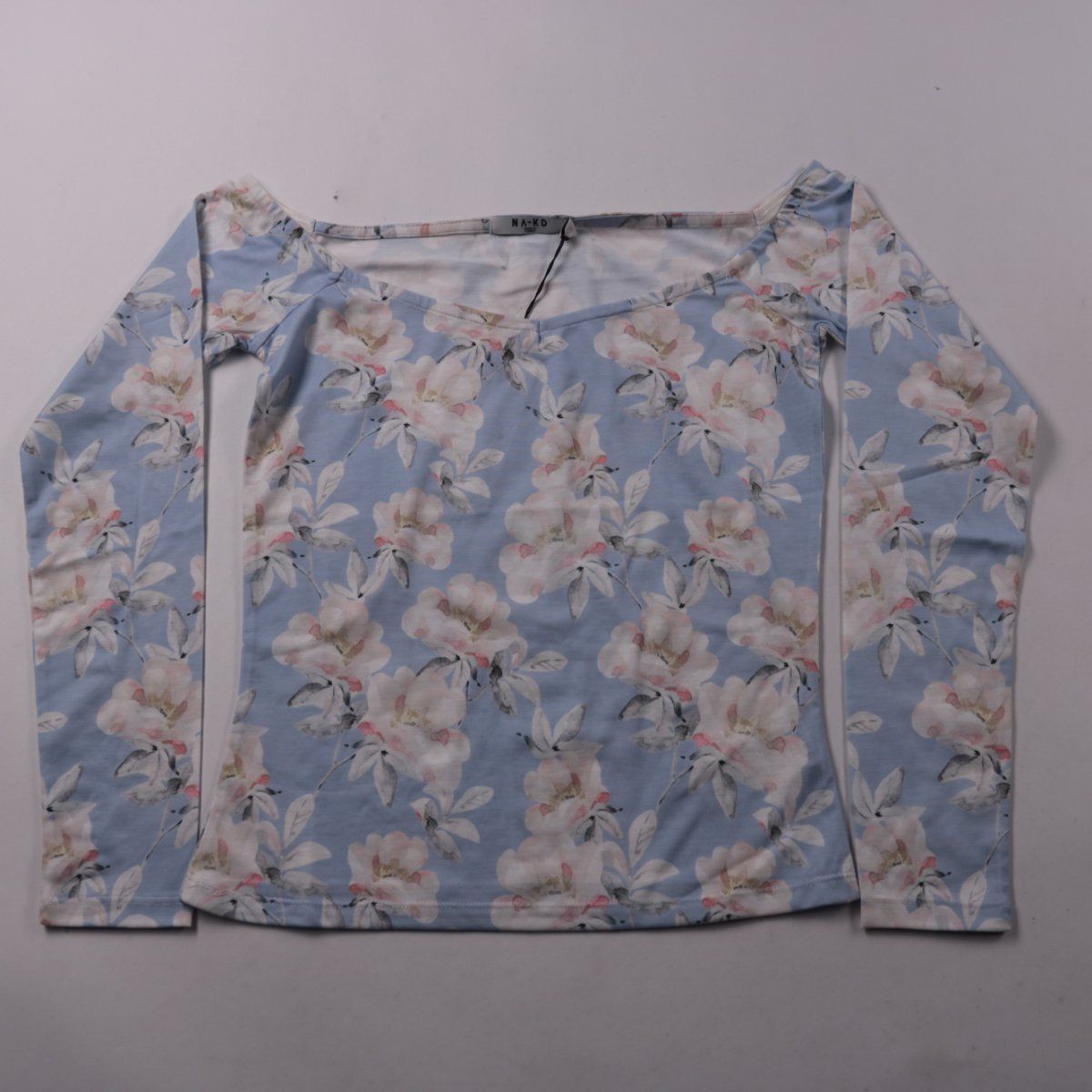 Женский лонгслив NA-KD с квадратным вырезом и цветочным принтом на голубом фоне. Подойдёт для повседневных образов и как базовый слой в прохладную погоду. Тянущийся материал комфортно садится по фигуре и не сковывает движения.