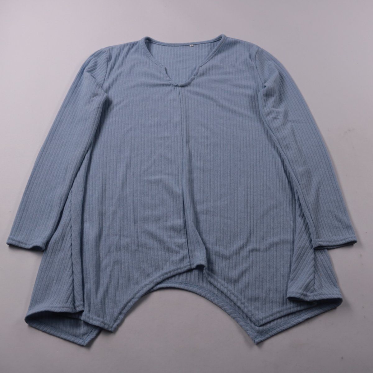 Женский лонгслив в рубчик с V-образным вырезом и асимметричным низом. Подойдёт для повседневной носки в демисезон и для многослойных образов. Тянущаяся ткань обеспечивает комфорт и не сковывает движения.