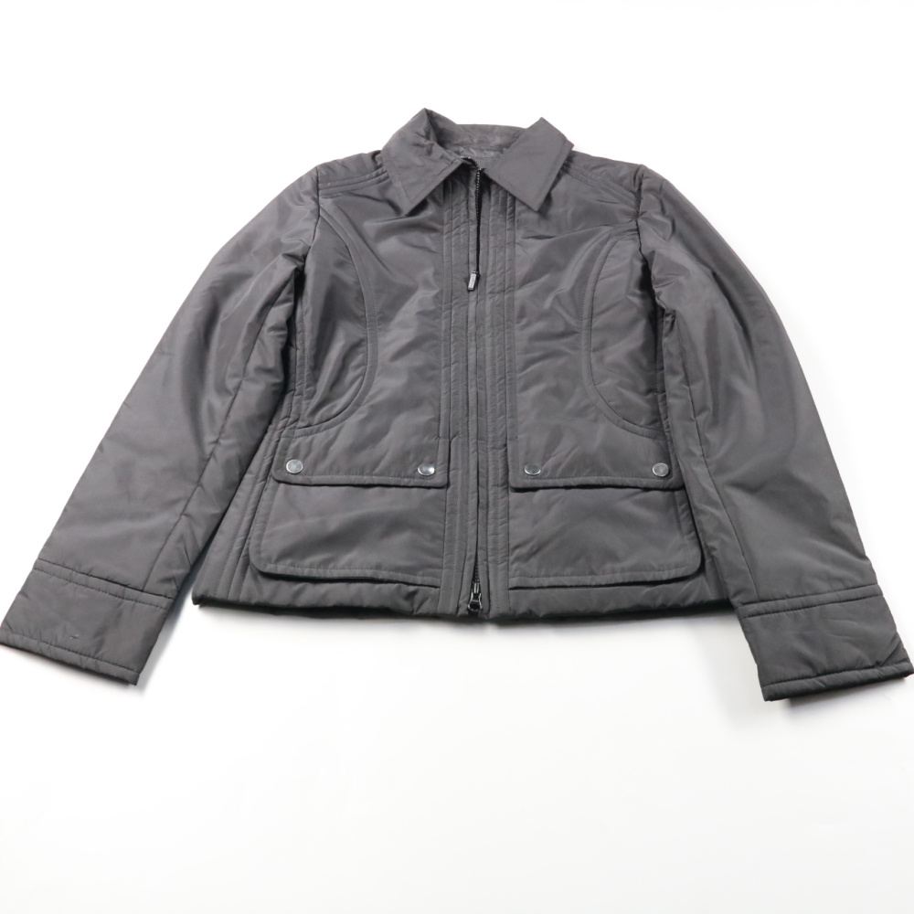 Короткая куртка H&M серого цвета на молнии, с отложным воротником и накладными карманами на кнопках. Подойдёт для прохладной погоды весной и осенью и хорошо сочетается с джинсами и брюками. Практичный плюс — лёгкий уход и немаркий цвет.