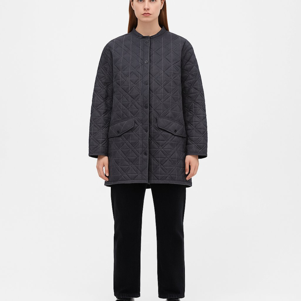 Стёганая демисезонная куртка NISSA прямого силуэта на кнопках, с округлым воротником и накладными карманами с клапанами. Подойдёт для прохладной погоды осенью и весной, удобно носить на свитер или худи. Практичный плюс — лёгкая и не требует сложного ух...