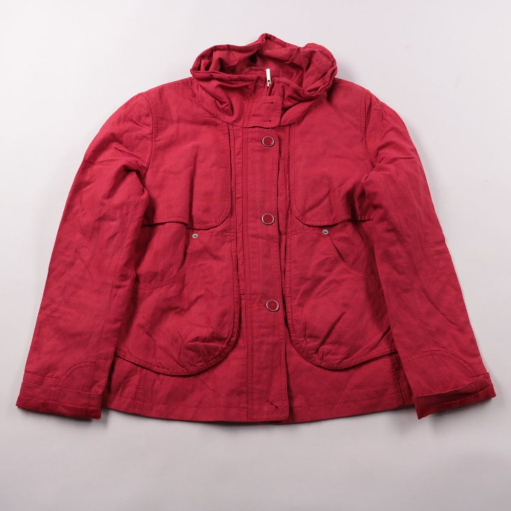 Лёгкая женская куртка Taifun Collection в насыщенном бордовом цвете, с капюшоном и крупными накладными карманами. Подойдёт для прохладной весны и осени, удобно носить в городе и в поездках. Практичный плюс — хлопковая ткань с добавлением полиамида и по...