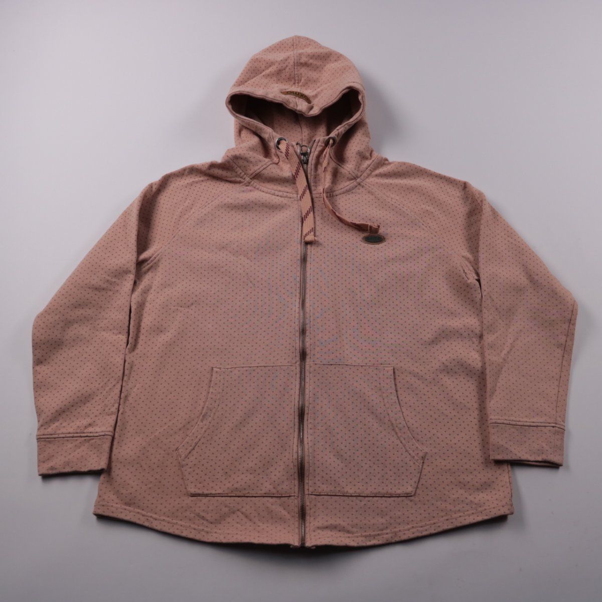 Лёгкая куртка Oxmo на молнии с капюшоном и карманами-кенгуру, выполнена в спокойном розово-бежевом оттенке с мелким принтом. Подойдёт для прогулок и повседневных образов в прохладную погоду. Мягкий материал комфортно сидит и не сковывает движения.