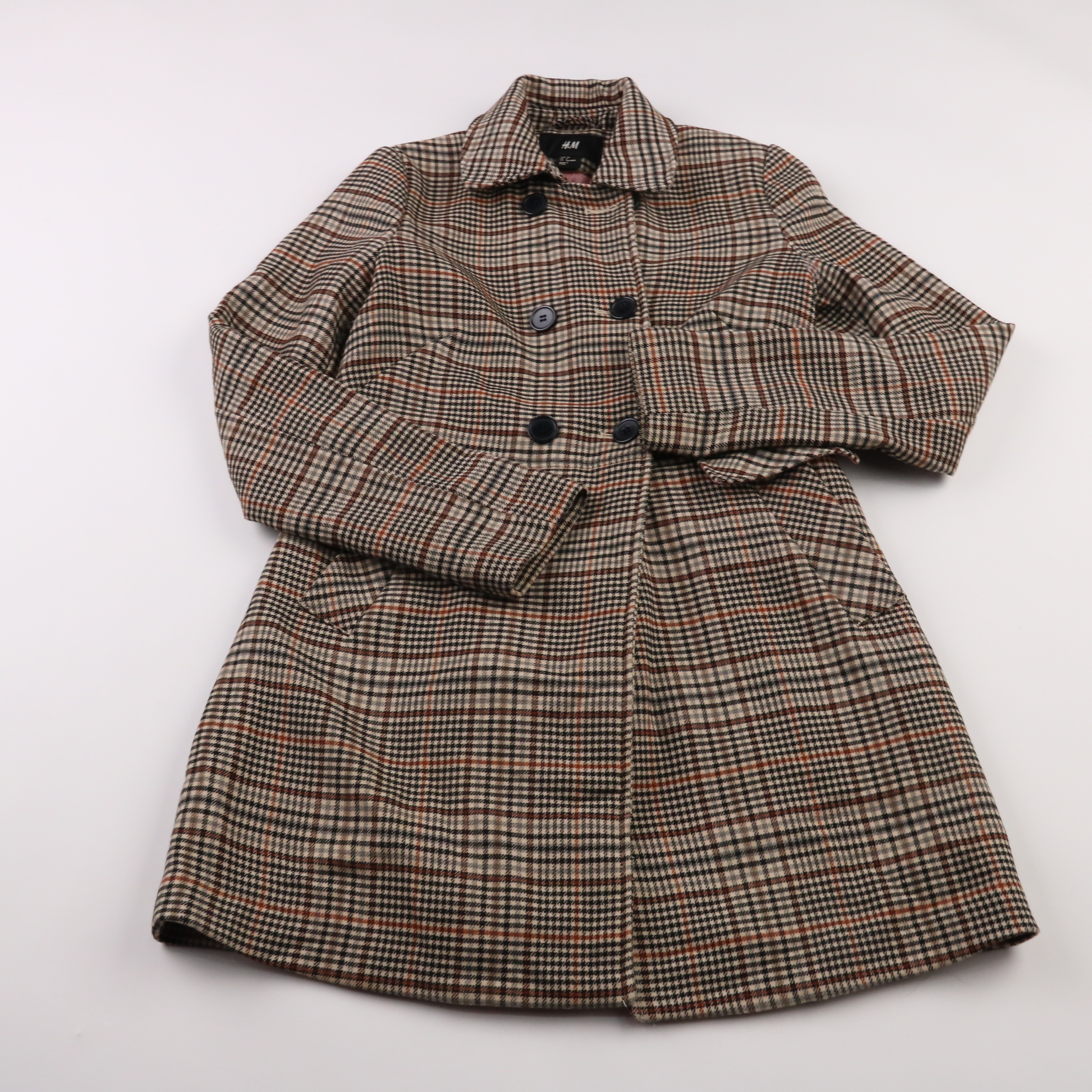 Женское двубортное пальто H&M в клетку, с отложным воротником и карманами. Подойдёт для осени и весны, хорошо сочетается с базовыми джинсами и классическими брюками. Практичный плюс — износостойкая ткань с небольшим добавлением эластана и гладкая подкл...