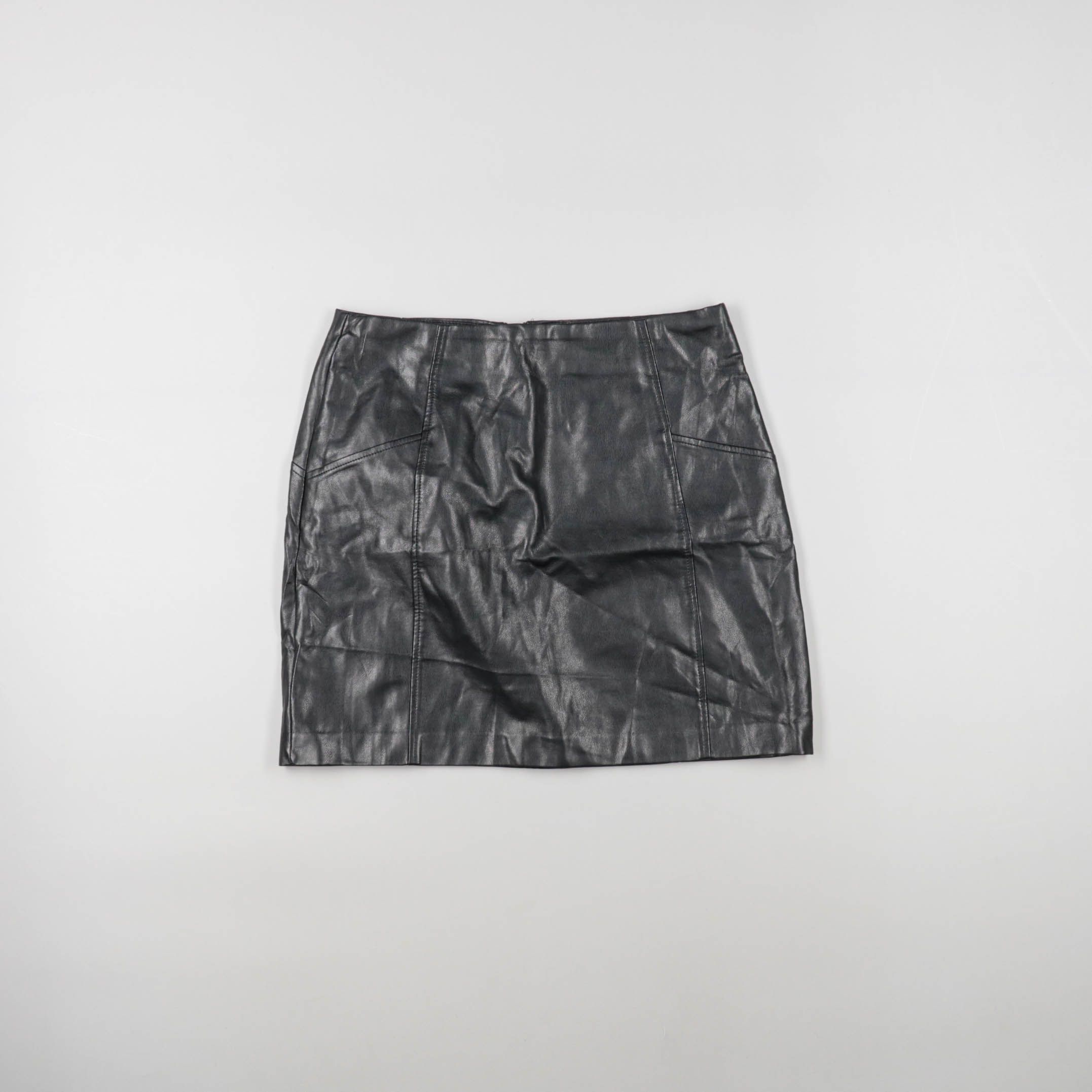 Женская короткая юбка из гладкого материала под кожу, чёрного цвета, с декоративными швами и молнией сзади. Подойдёт для повседневных образов и вечерних выходов с топом, рубашкой или жакетом. Практичный плюс — легко сочетается с базовой обувью и верхом...