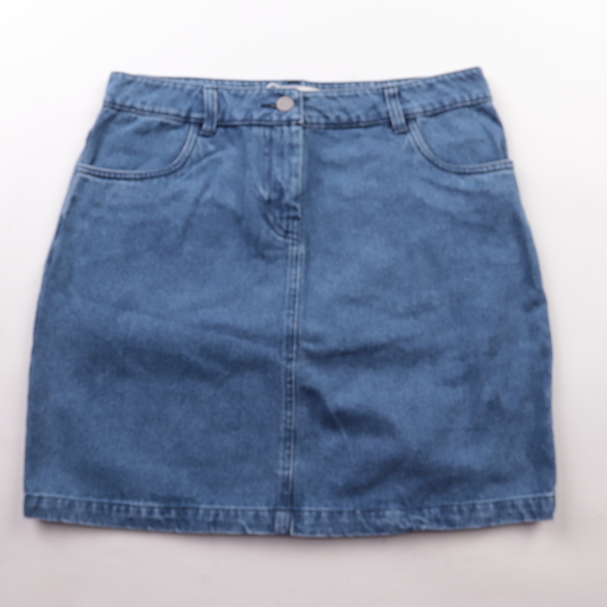 Джинсовая юбка Etam из плотного хлопка, прямого кроя с классическими карманами и застёжкой на пуговицу. Подойдёт для повседневных образов на прогулку или в офис в casual-стиле. Практична в носке и легко сочетается с футболками, рубашками и свитерами.