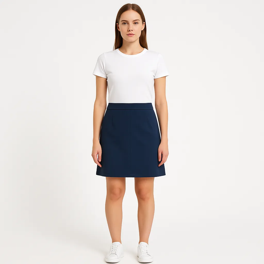 Юбка Only прямого кроя из плотной костюмной ткани, цвет Black Iris (тёмно-синий). Подойдёт для офиса и повседневных образов, хорошо сочетается с футболками и рубашками. Материал слегка тянется, поэтому юбка комфортно садится по фигуре.