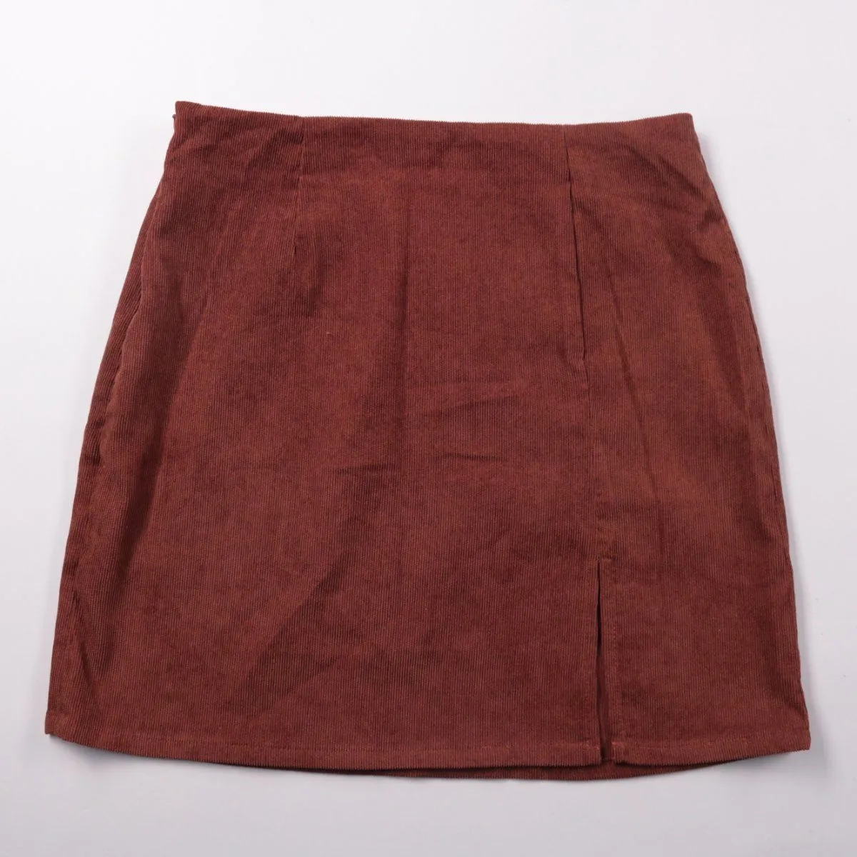 Вельветовая юбка Shein в бордовом цвете с прямым силуэтом и небольшим разрезом спереди. Подойдёт для повседневных образов в прохладную погоду с водолазкой или свитером. Плотный материал хорошо держит форму и комфортно носится.