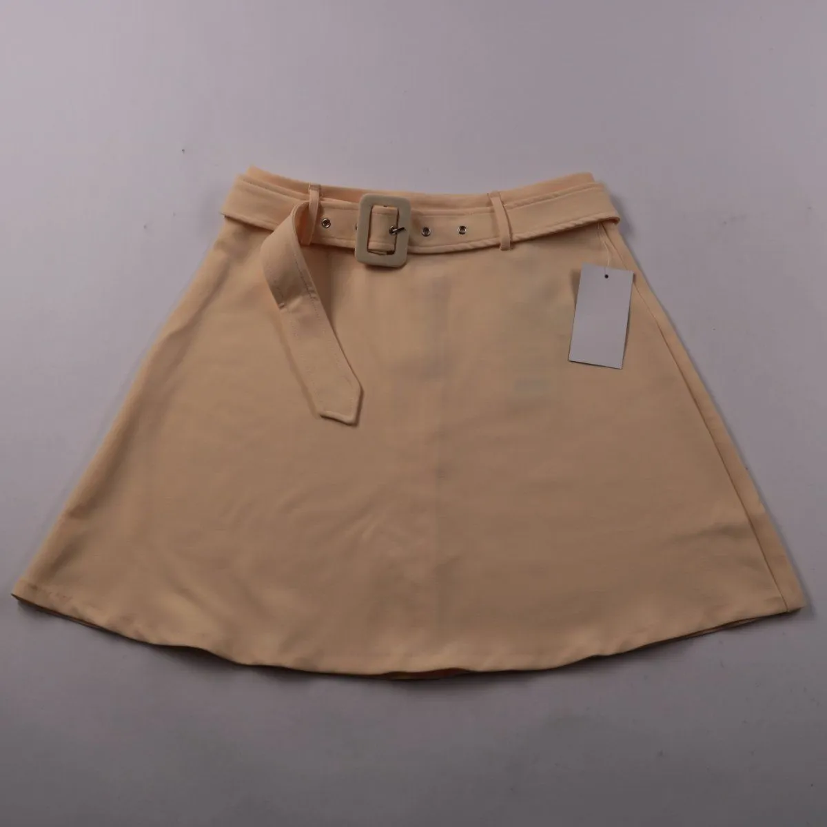Юбка NA-KD мини длины с поясом и пряжкой в нежном пыльно-светло-жёлтом оттенке. Подойдёт для летних прогулок и повседневных образов с топами и футболками. Ткань с добавлением эластана немного тянется и комфортно садится по фигуре.