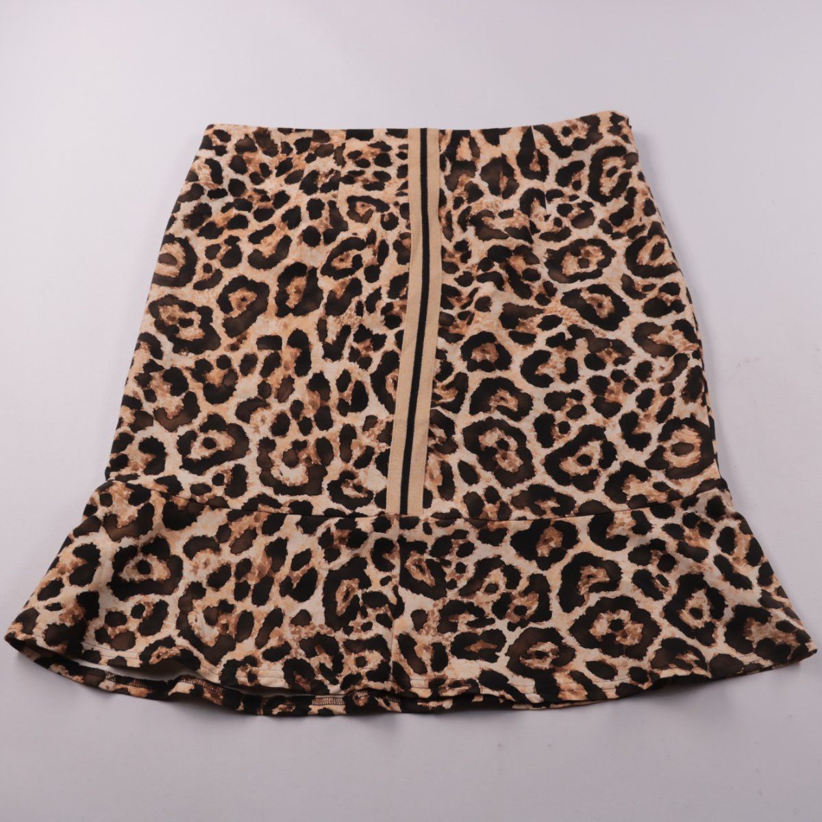 Юбка Eugen Klein с леопардовым принтом и небольшим воланом по низу. Подойдёт для повседневных образов и для выхода в тёплую погоду или в помещении. Принт легко сочетать с однотонным верхом.